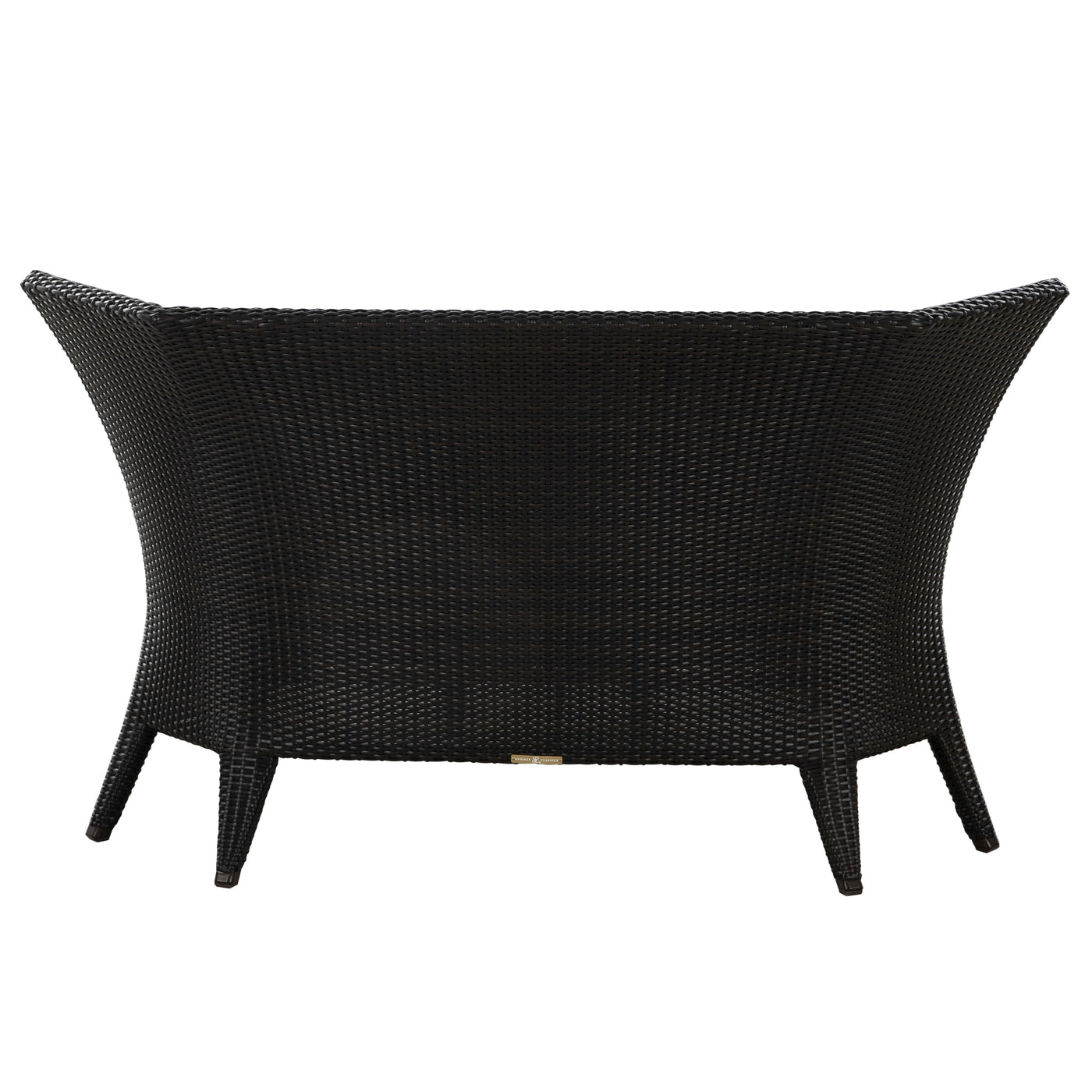 - Features an upholstered frame crafted in woven N-Dura wicker for lasting strength and elegant outdoor style