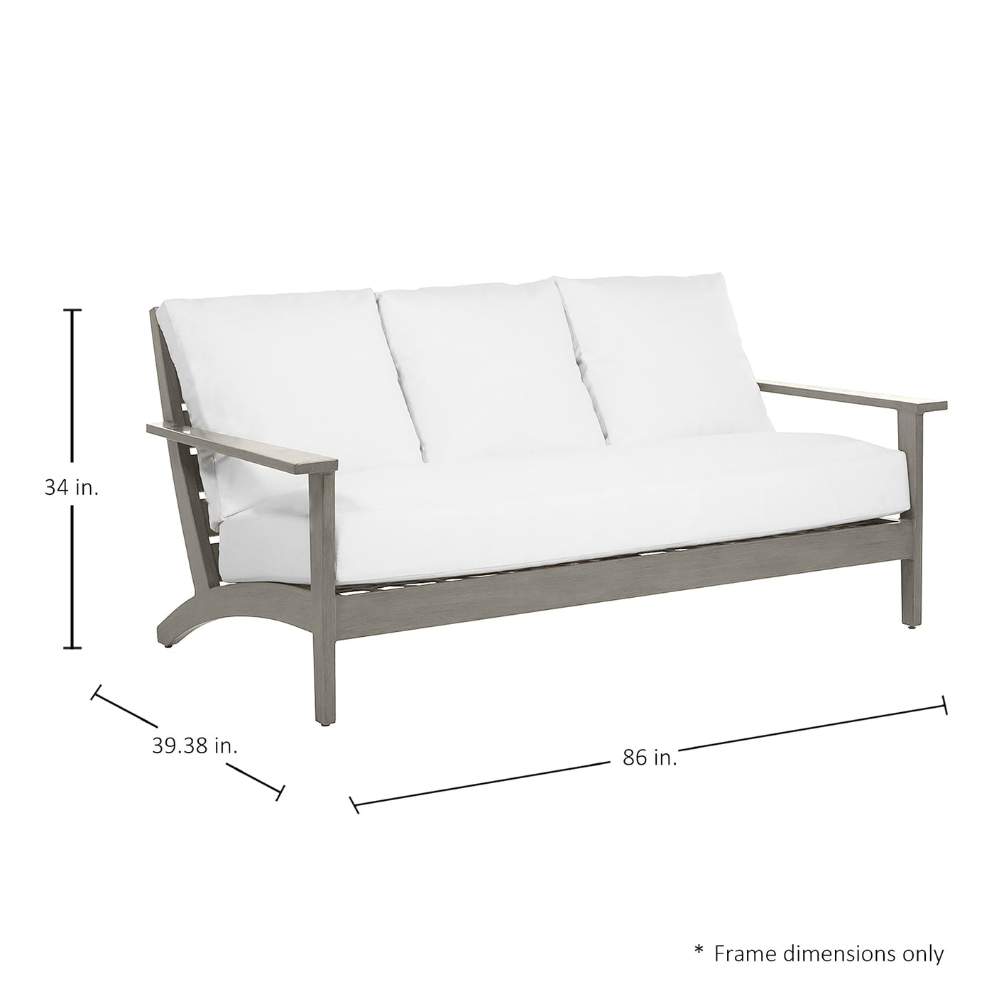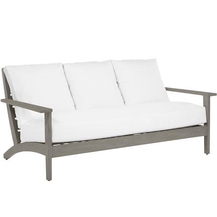 The Kennebunkport Sofa is an update of a circa 1999 Summer Classics favorite. This sofa blends timeless design with modern materials. Its wrought aluminum construction ensures durability, while the architectural-grade powder-coated finish offers a lasting hue resistant to the elements. Comfort meets style with plush cushions, perfect for any outdoor setting. This versatile piece is designed to mix with other collections, providing a sophisticated and enduring addition to your space.