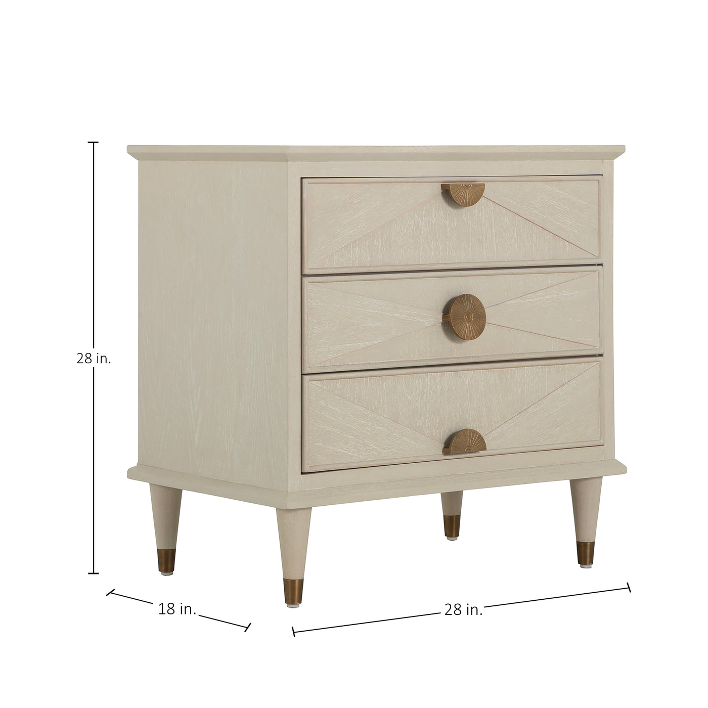 Emberly Oak Wood Nightstand - 3 Drawers, Ceruse White