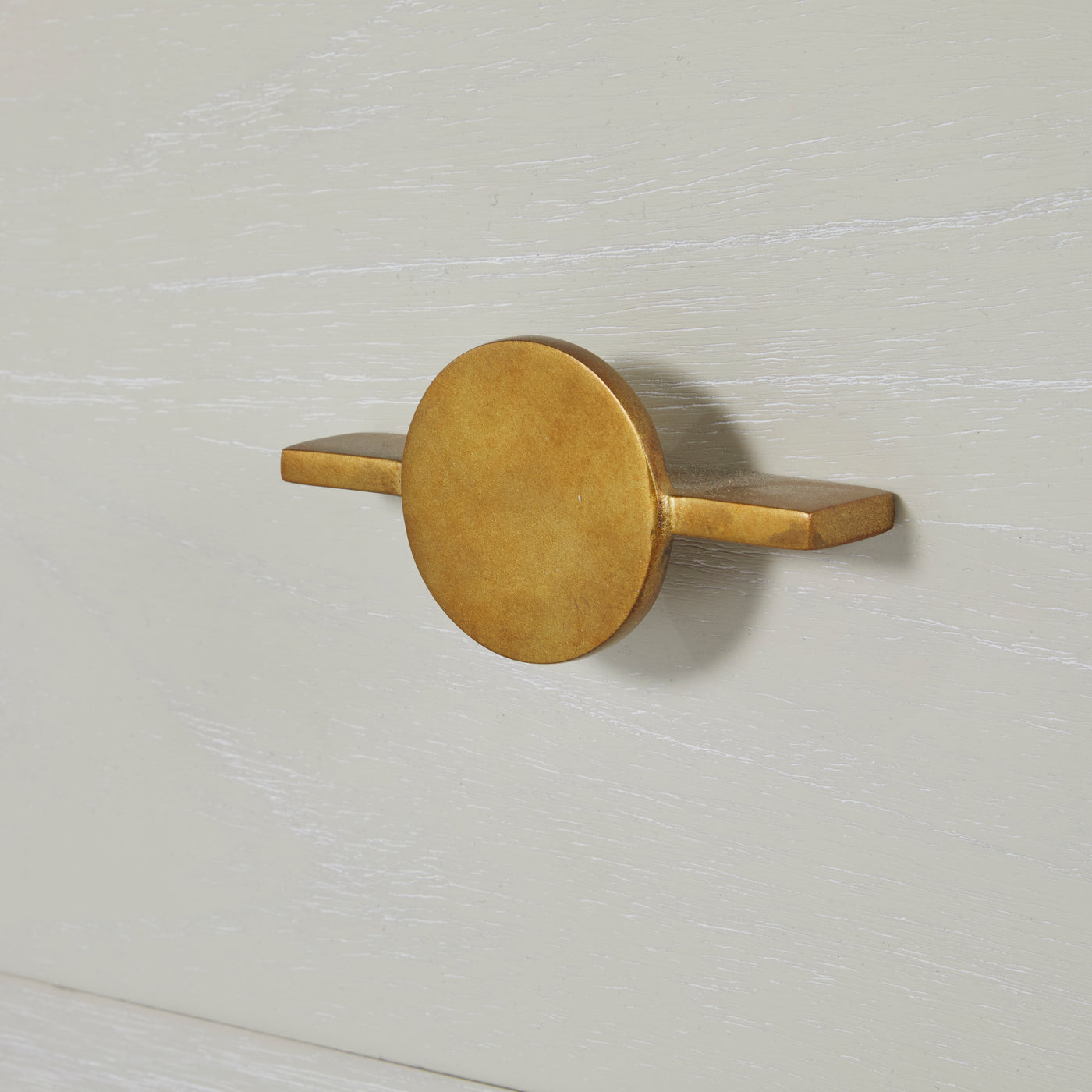 The Fairmont Dresser showcases a harmonious blend of classic design and modern functionality. With its sleek silhouette finished in a refined cerused white, this dresser brings elegance to any bedroom or living space. It features six spacious drawers, each adorned with unique circular stained gold hardware that adds a touch of sophistication. The Fairmont Dresser not only enhances your room's aesthetics but also offers ample storage for your essentials.