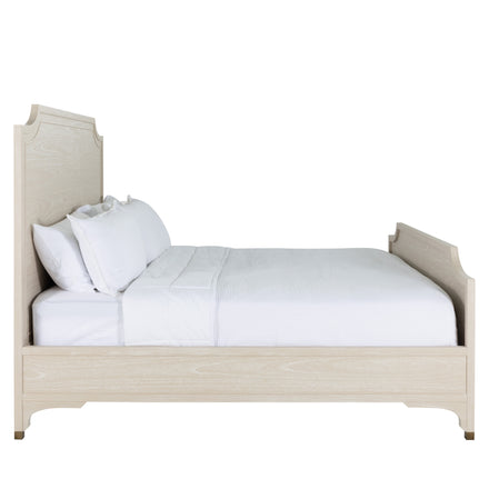 The Alexandra King Bed is a refined blend of traditional design and modern elegance, crafted from high-quality mindi wood and finished in a sophisticated cerused white. This elegant bed showcases subtle stained gold accents, adding a touch of warmth and luxury to its clean lines. The detailed headboard and footboard feature detailed paneling, with gently curved corners that exude timeless charm. Available in both king and queen sizes, the Alexandra Bed makes a statement of understated grandeur, perfect for any bedroom that embraces classic design with a contemporary twist.