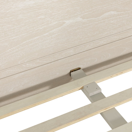 - Cerused white finish adds refined texture and a fresh, sophisticated tone