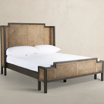 Camille Natural Rattan Wood Transitional Cane Bed - King, Brown
