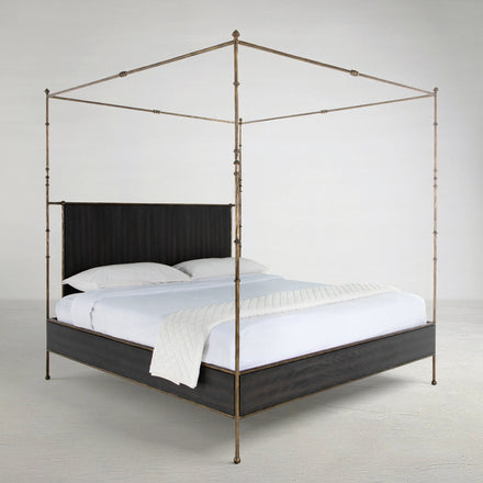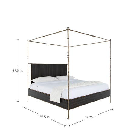 Reese Wood Metal Modern Canopy Bed - King, Black, Dark Antique Brass