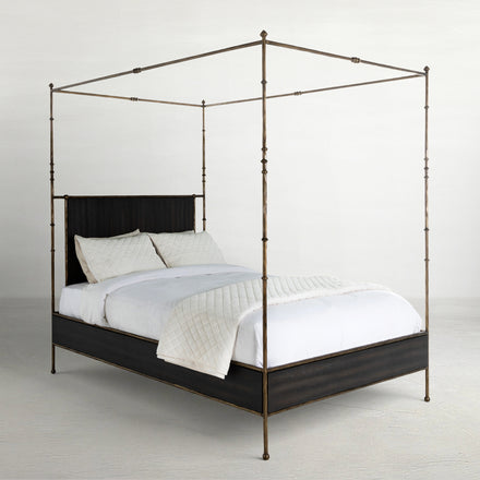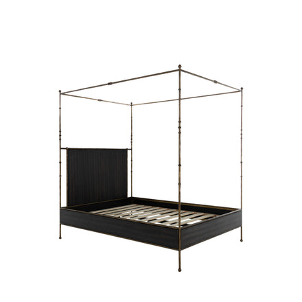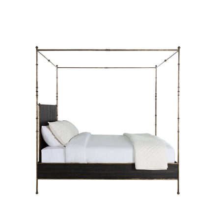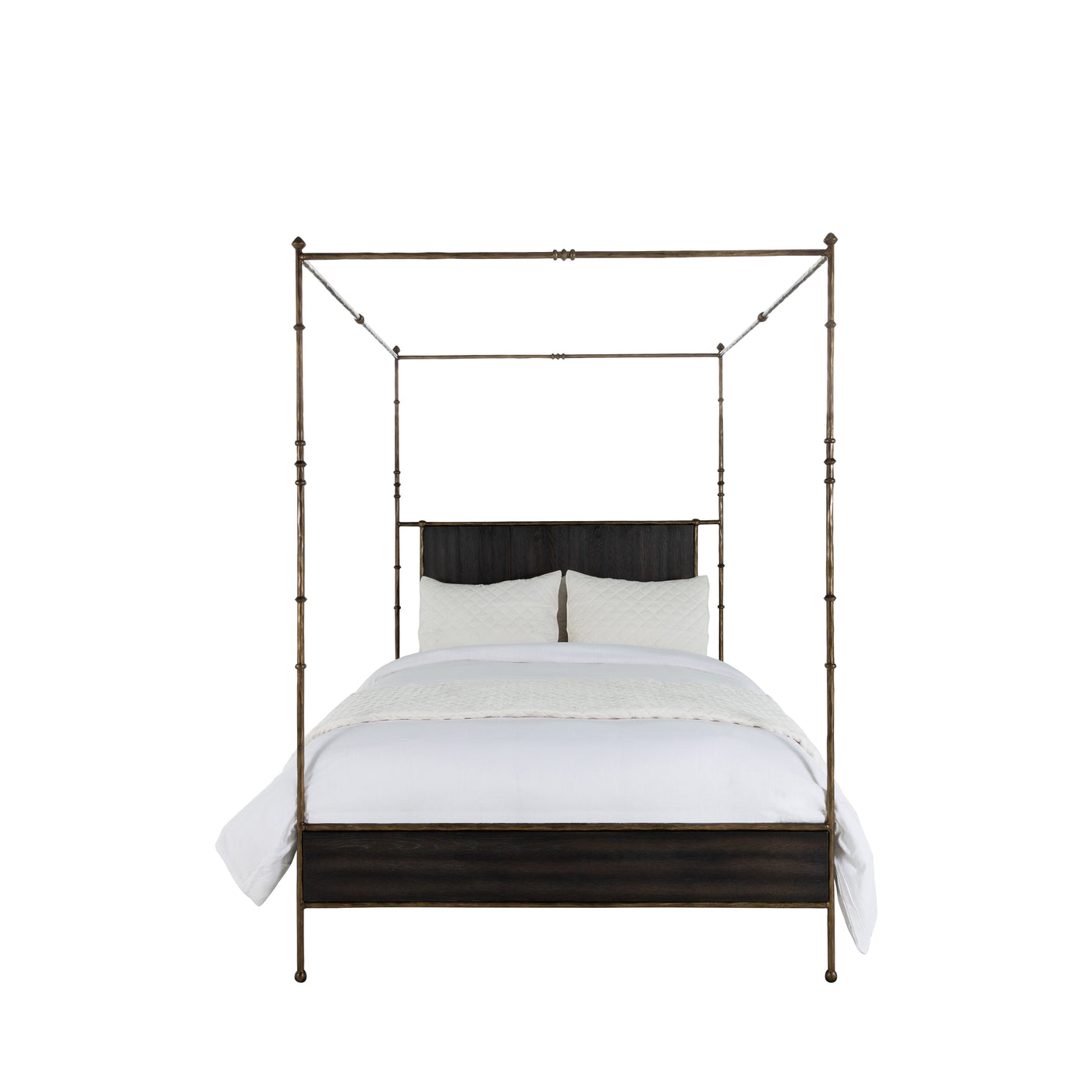 Reese Wood Metal Modern Canopy Bed - Queen, Black, Dark Antique Brass