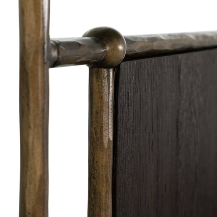 - Crafted with a striking mix of dark wood and forged metal for a bold and balanced design