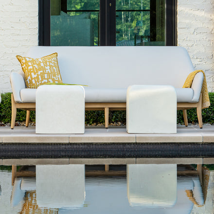 The Grebe Stool epitomizes minimalist elegance, offering a seamless blend of functionality and modern design. Its sleek, geometric silhouette, fashioned from high-quality cast stone, presents a smooth and sturdy surface, fitting effortlessly into a diverse range of interior and exterior decors. The stool's substantial build and neutral hue allow it to double as both a practical seating option and a contemporary accent piece. This versatile item reflects a commitment to excellence in both craftsmanship and material selection, ensuring durability and style.