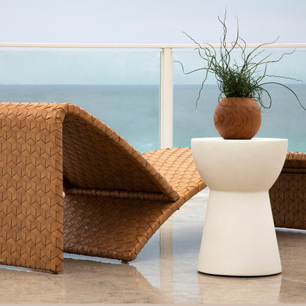 The Ibis End Table presents a harmonious fusion of simplicity and robustness, ideal for adding a touch of minimalist elegance to any space. Cast in a graceful form, the table's smooth, wide top transitions into a flared base, creating an appealing profile that nods to modern design while providing stable support. This piece's aesthetic is heightened by the textured organic touch to its sturdy silhouette. This end table represents the intersection of form and function—a stylish, durable addition to the discerning decorator's ensemble.