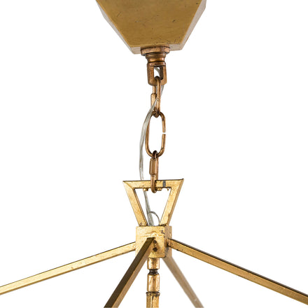 The Adler Chandelier - Small is a refined and elegant lighting fixture that exudes antique charm with its vintage gold finish. This compact chandelier features an open geometric design, allowing for an airy and light-filled aesthetic. Its candle-style lights provide a classic touch, creating a warm and inviting glow in any room. Perfect for smaller spaces such as cozy dining areas, intimate entryways, or bedrooms, the Adler Chandelier - Small adds a touch of sophistication without overwhelming the space. Its versatile design seamlessly blends with a variety of d?cor styles, from modern to traditional.
