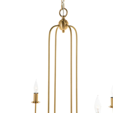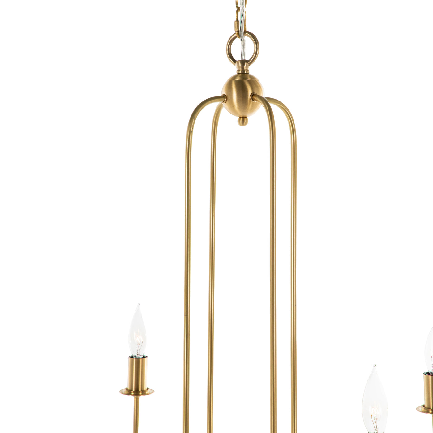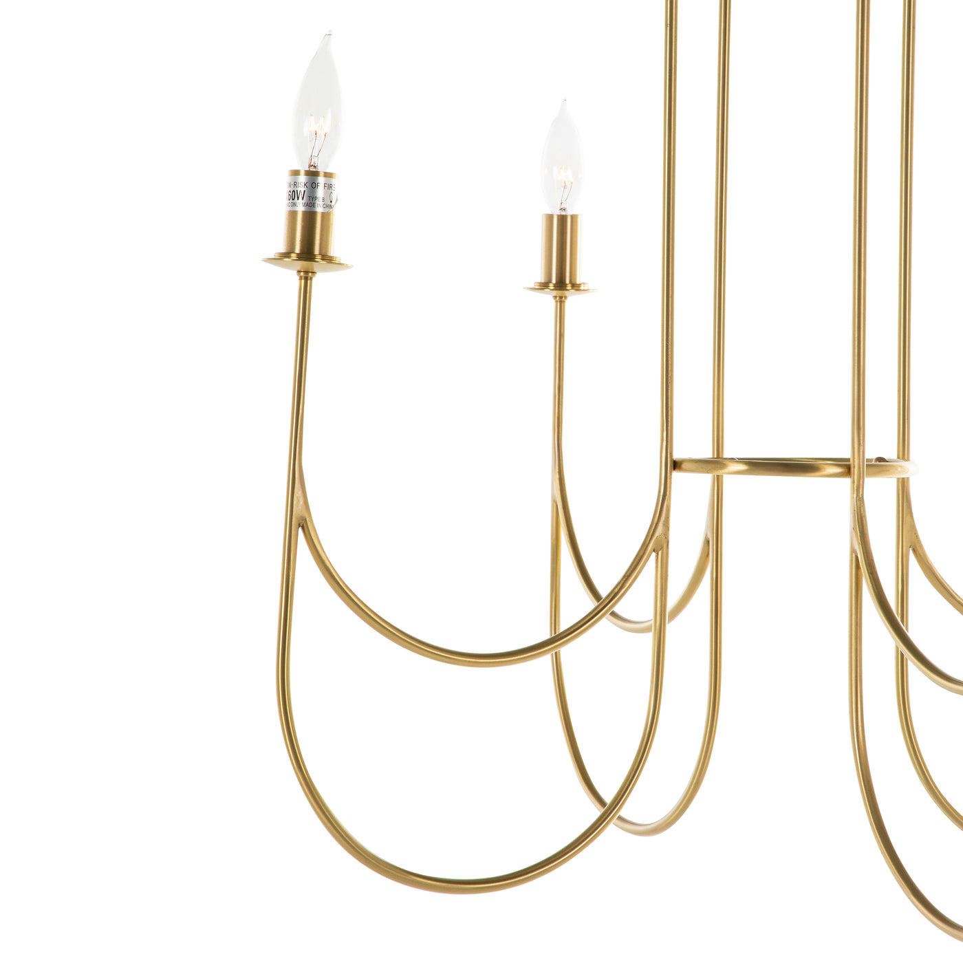 - Crafted with four sweeping double arms and a brass finish for a refined statement rooted in art deco inspiration