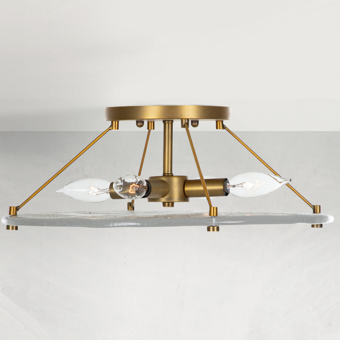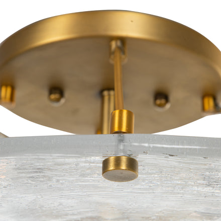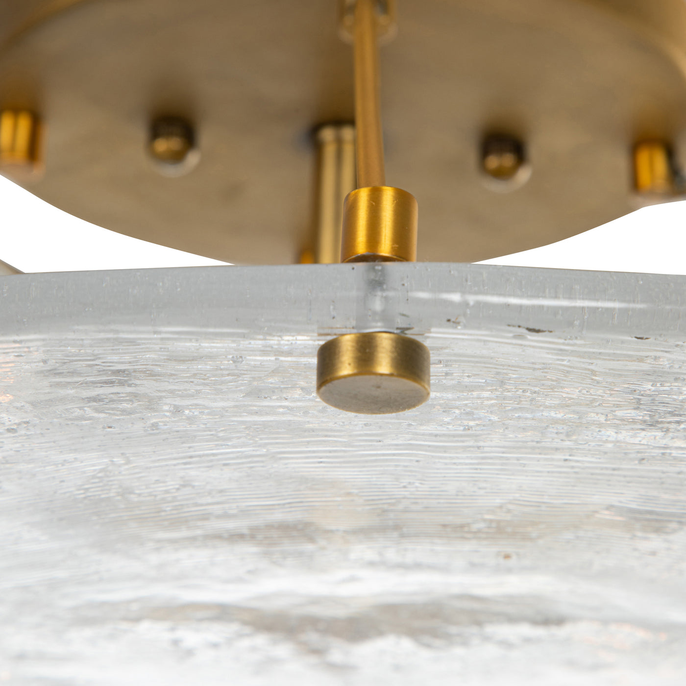 The Madison Flush Mount is a dazzling low-profile fixture that adds just the right amount of sparkle to any ceiling. Its stained gold finish and cast glass elements create a stunning visual effect, making it perfect for rooms with limited ceiling height. This fixture provides ample illumination while enhancing the overall aesthetic of your interior design.