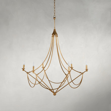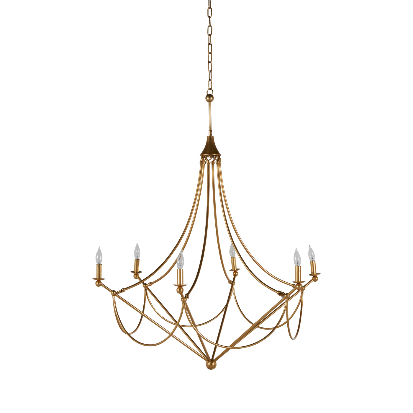 Ampere requirement 1 Brand Gabby Bulb included No Canopy included Yes Canopy shape Round Certifications and compliance Prop 65 Lead, UL, UL Dry Country of origin CHN Contract viable Yes Dimmable Yes Finish family Gold Hardware finish Vintage Gold Has diffuser No Has shade No Light direction Ambient Material Iron Natural material disclosure Natural, Handmade Number of arms 6 Number of bulbs 6 Number of tiers 1 Power source Hardwired Removable diffuser No Removable shade No