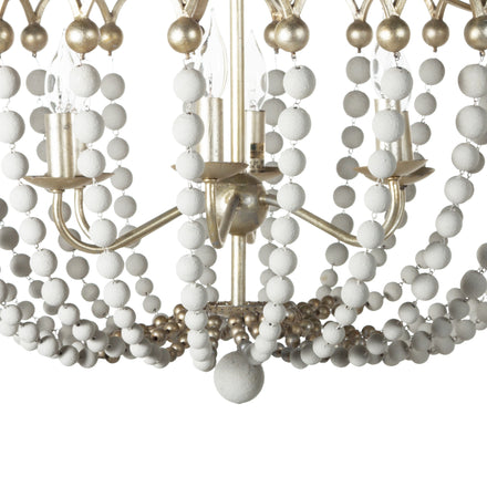 - Handcrafted with dove white wooden beads and champagne silver finish to exude refined elegance and artisanal charm