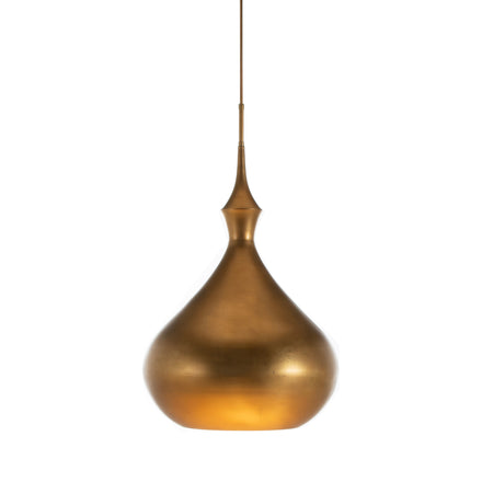 The Sadie Pendant in Gold is a statement of timeless elegance and modern sophistication. Featuring a graceful silhouette, this pendant light is finished in a warm vintage gold that adds a touch of luxury to any space. Its unique shape and rich finish make it a perfect for dining rooms, kitchens, or entryways. The Sadie Pendant provides a soft, ambient glow, creating an inviting atmosphere while enhancing your decor with its refined and captivating design.