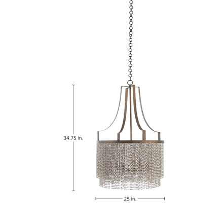 - Gracefully curved arms and cascading chain tiers create depth and texture, enhancing visual interest in any setting
