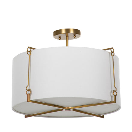 The Theresa Semi-Flush Mount raises the bar of refined semi-flush mount lighting fixtures. It combines simple design with thought out details, featuring a brass or bronze finish and feather white linen shade. This versatile lighting fixture adds a singular style statement to any space, from entryways to living areas, enhancing your decor with its refined elegance and soft illumination. The Theresa Semi-Flush Mount effortlessly blends with a variety of interior styles, making it a perfect addition to any room seeking a touch of sophistication.