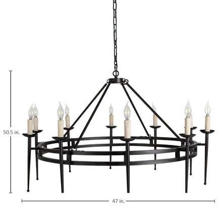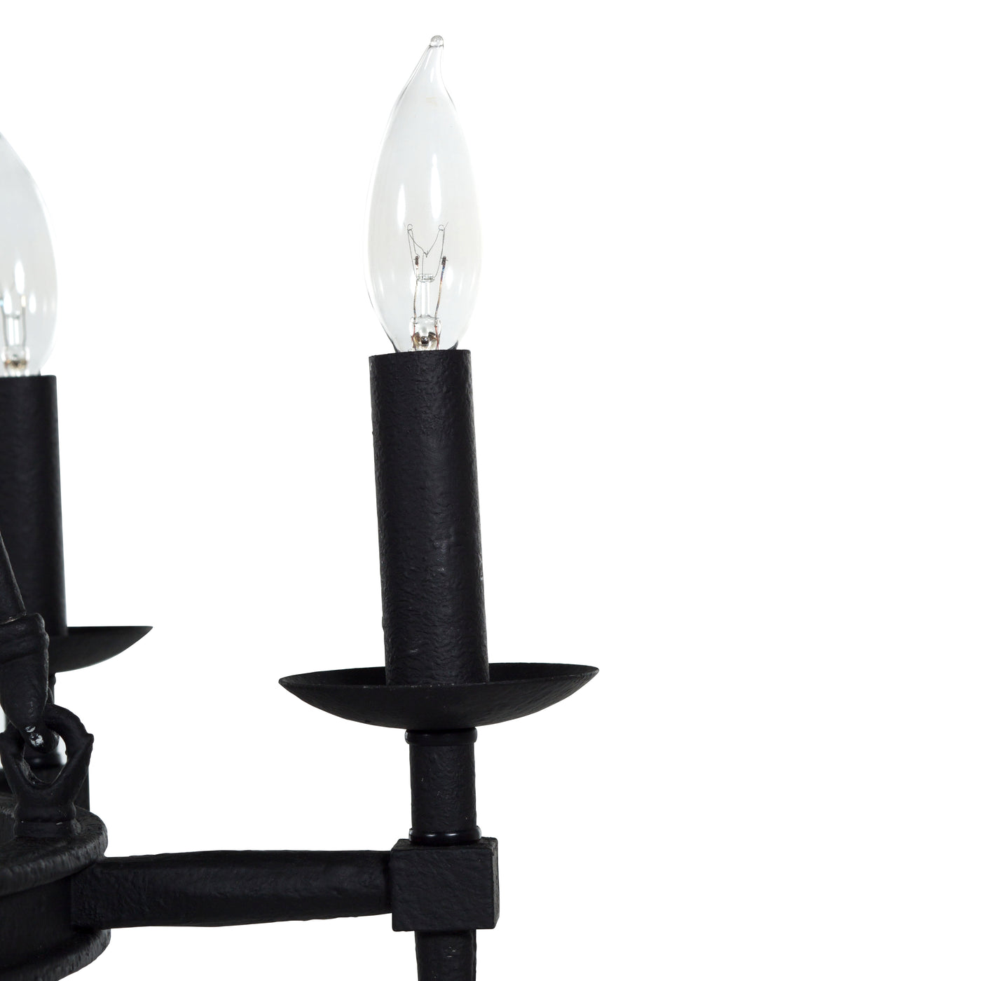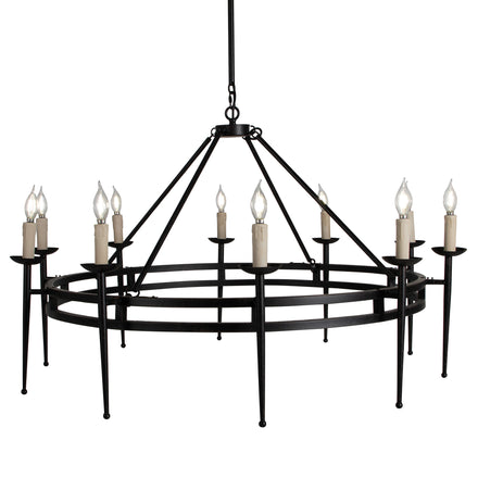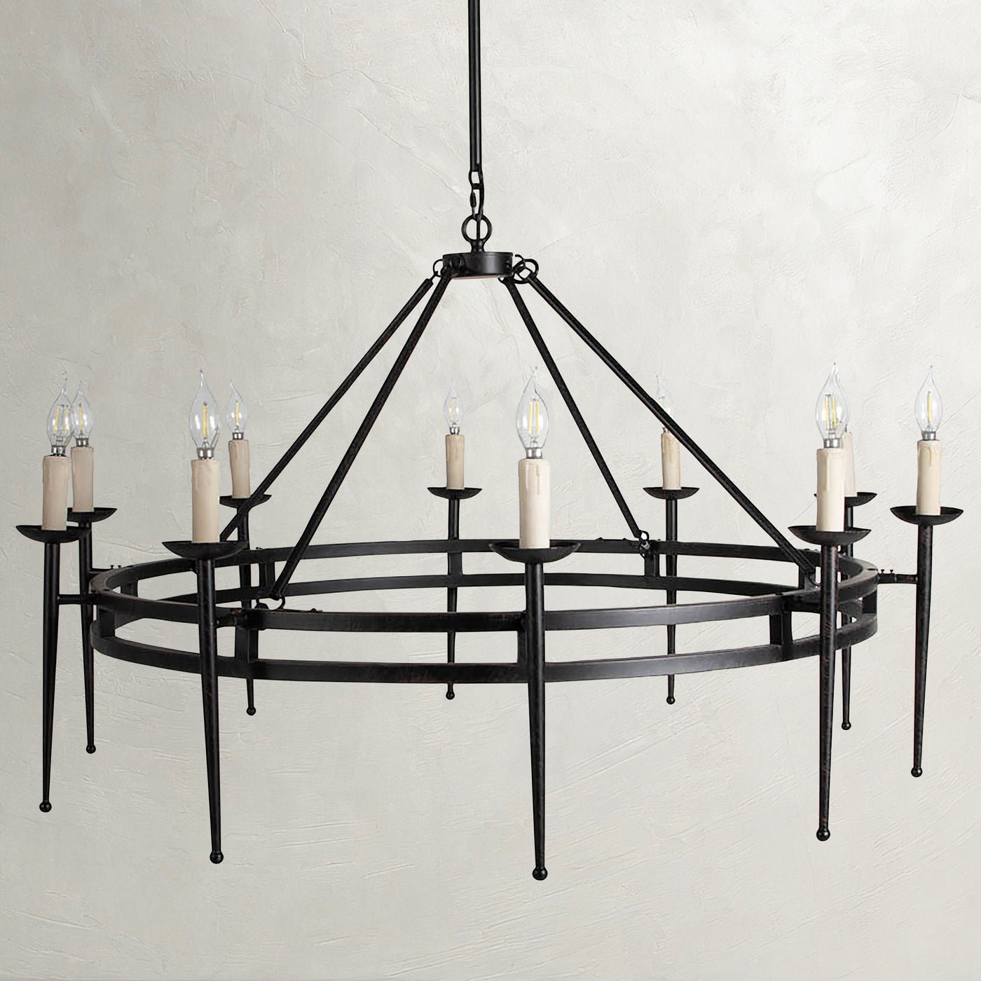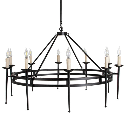 Introducing the Tyrell Chandelier, a modern interpretation of the traditional forged wrought iron chandelier. Featuring a striking double-stacked ring design and dramatic faux candle sleeves, this chandelier blends the rustic charm of Spanish medieval styles with a contemporary twist. Its robust forged metal frame in a brushed antique black finish adds an industrial edge while maintaining the elegance of classic design. Perfect for adding a bold, timeless statement to dining rooms, entryways, or living spaces, the Tyrell Chandelier brings a unique mix of tradition and modernity to any setting.