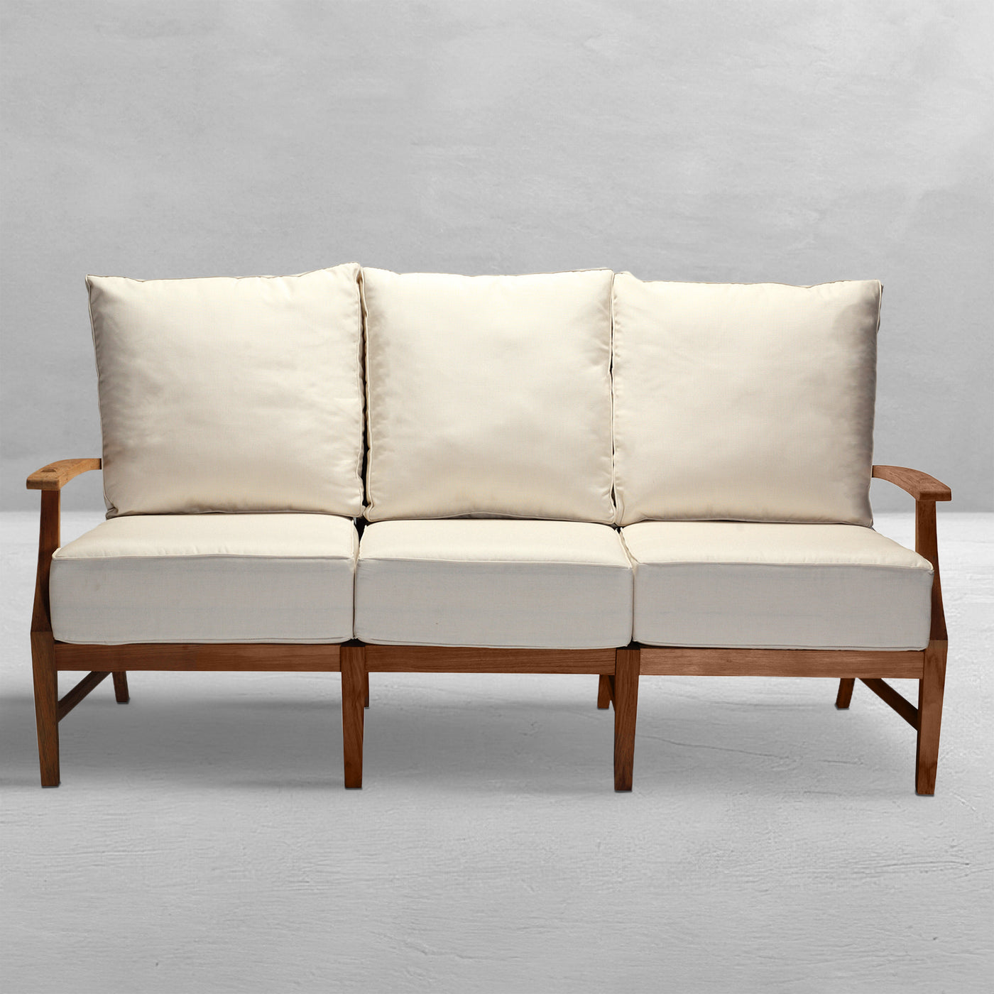 The Croquet Teak Sofa, an embodiment of sustainable luxury, features Grade A teak sourced from Indonesian plantations managed with environmental consciousness. Celebrated for its dense grain, teak is known for its durability and weather resistance, ideal for crafting premium outdoor furniture. This sofa harmoniously blends timeless design with robust functionality. Choosing this piece is not just an investment in sophisticated style but also a commitment to eco-friendly living.