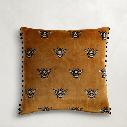 The Bumble Pillow brings charm to any room with its delightful bumblebee pattern set against a rich golden background. This plush velvet pillow is adorned with playful pom-pom trim, adding a fun and sophisticated accent to your décor. Available with either hypoallergenic or feather filling, the Bumble Pillow offers both comfort and versatility, making it a perfect addition to your living space or bedroom. Proudly made in the USA, our Gabby pillows are expertly handwoven by skilled American craftsmen. Offering stain-resistant finishes and available in various sizes, these pillows come with either luxurious feather-down or hypoallergenic poly-fiber fill. Designed for both beauty and practicality, Gabby pillows add comfort and style to any space.