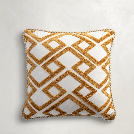 The Diamond in the Rough Pillow features a captivating geometric pattern reminiscent of interlocking diamonds. The intricate design adds a touch of sophistication and elegance to any decor, making it a standout accent piece. Proudly made in the USA, our Gabby pillows are expertly handwoven by skilled American craftsmen. Offering stain-resistant finishes and available in various sizes, these pillows come with either luxurious feather-down or hypoallergenic poly-fiber fill. Designed for both beauty and practicality, Gabby pillows add comfort and style to any setting.
