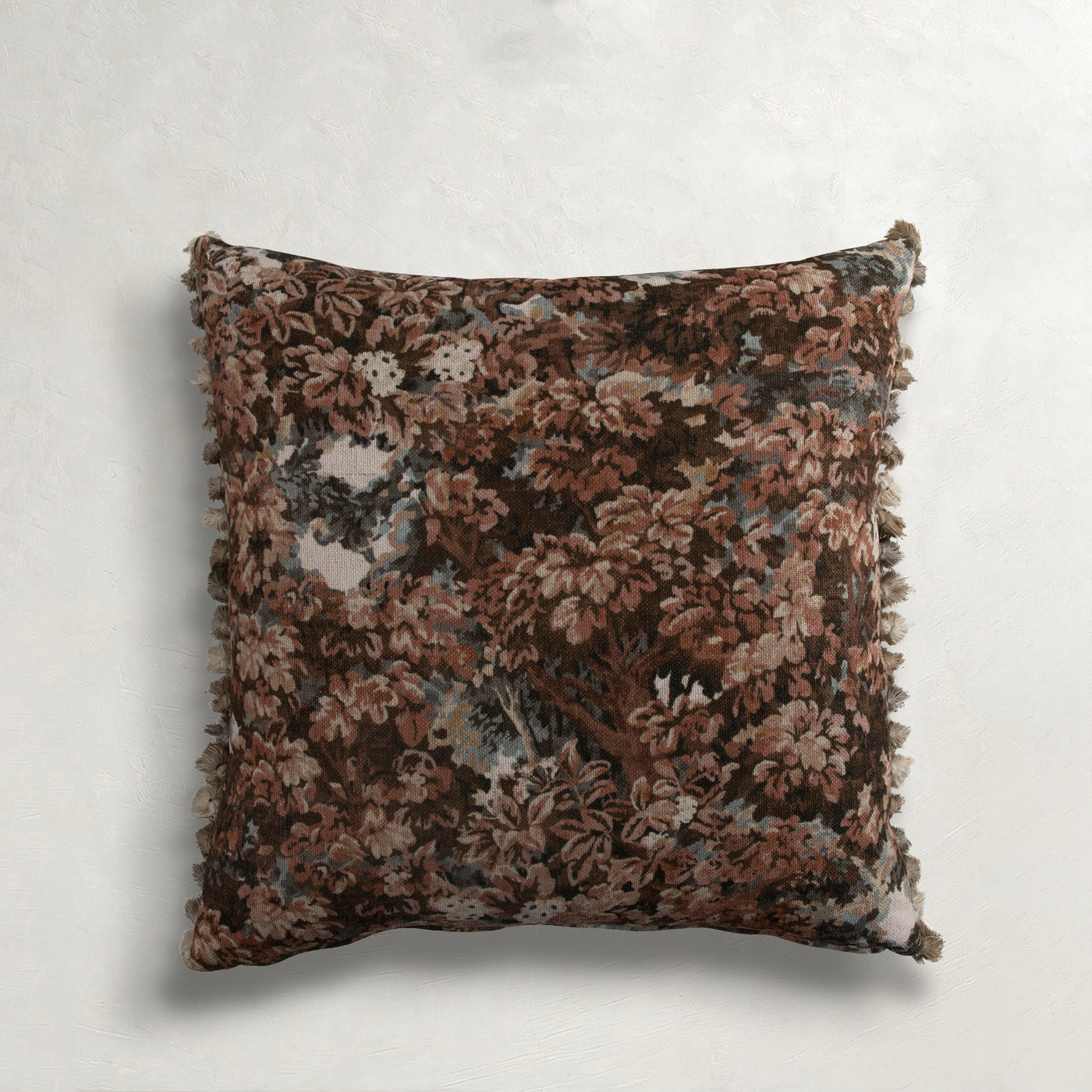 The Flourish Wheat Pillow showcases a lush, woodland-inspired design. The detailed tapestry-like pattern brings a touch of nature indoors, creating a serene and inviting atmosphere. Finished with delicate tassel fringe, this pillow adds texture and sophistication to your décor. Perfect for enhancing the natural beauty of your living space.Proudly made in the USA, our Gabby pillows are expertly handwoven by skilled American craftsmen. Offering stain-resistant finishes and available in various sizes, these pillows come with either luxurious feather-down or hypoallergenic poly-fiber fill. Designed for both beauty and practicality, Gabby pillows add comfort and style to any space.
