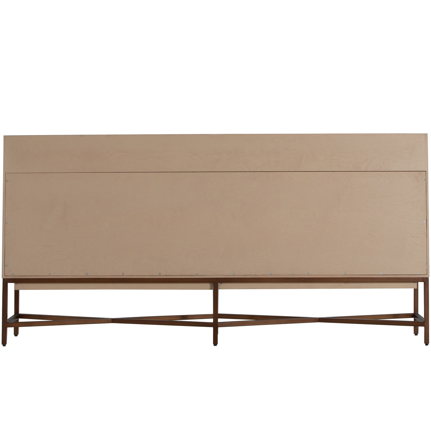 The slim silhouette of the Carol Sideboard makes it an easy fit in a variety of settings. Ribbing in a warp and weft-like pattern brings interesting texture to the natural blonde sideboard. An antique bronze cross-base design adds a touch of glamour, making this piece both chic and sturdy. Perfect for modern or transitional interiors of any room, the Carol Sideboard offers ample storage while enhancing the room's aesthetic appeal.