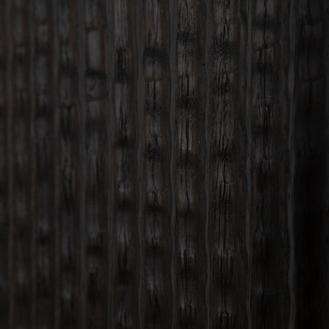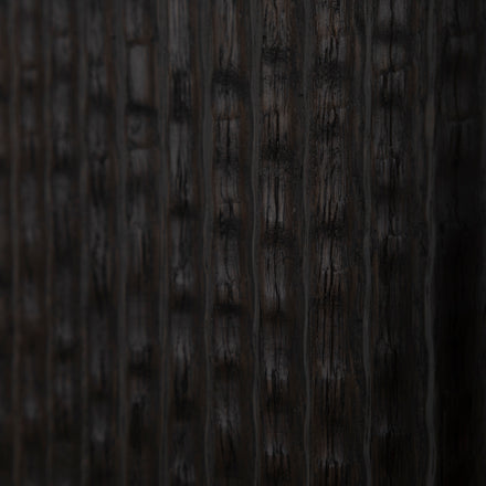 - Crafted from richly stained oak veneer with an organic carved ribbed texture for bold visual appeal