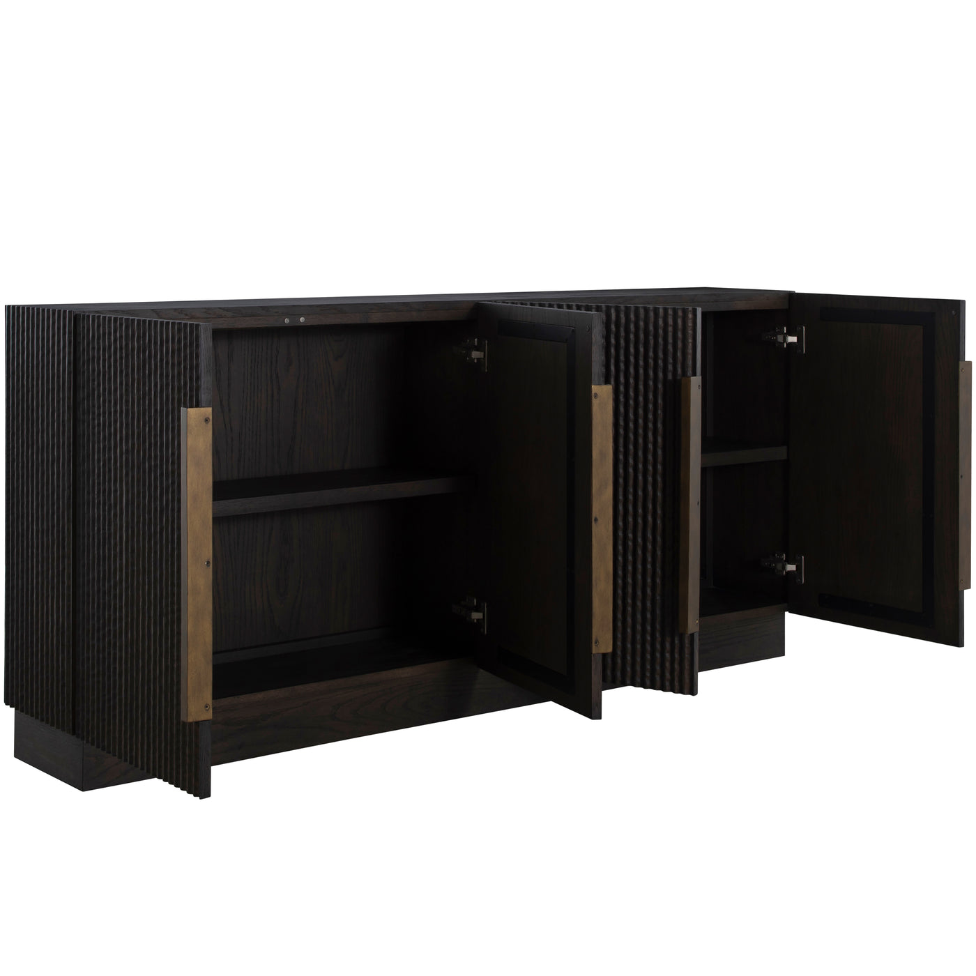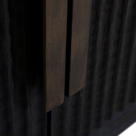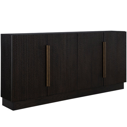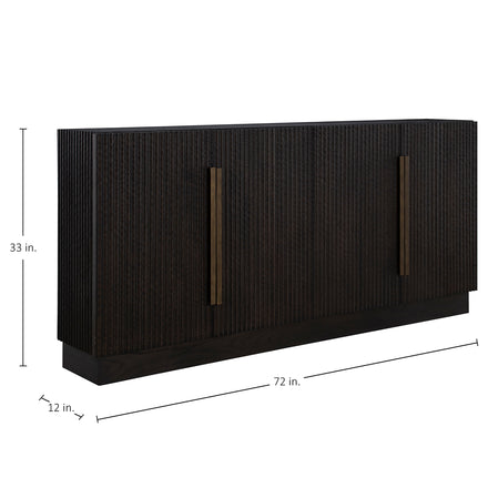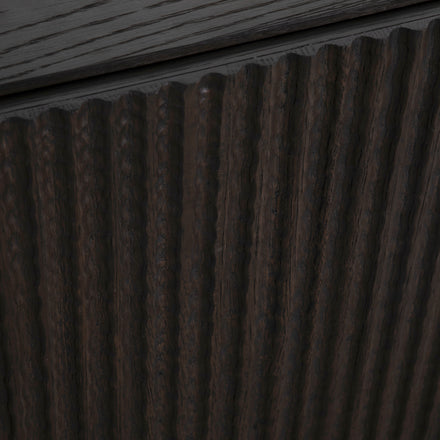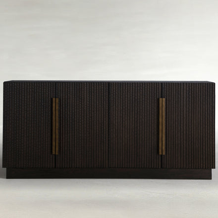 The Diego Sideboard delivers bold style in a sleek, space-saving design. At 72 inches long and just 12 inches deep, it's the perfect solution for under media, dining areas, or entryways where space is at a premium. Crafted from richly stained oak veneer with a organic carved ribbed texture, this piece features antique brass hardware that adds a refined, modern edge.