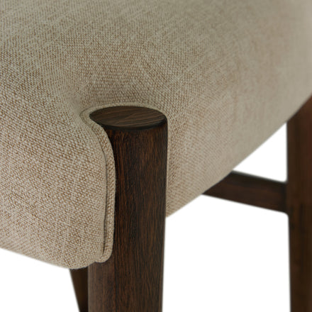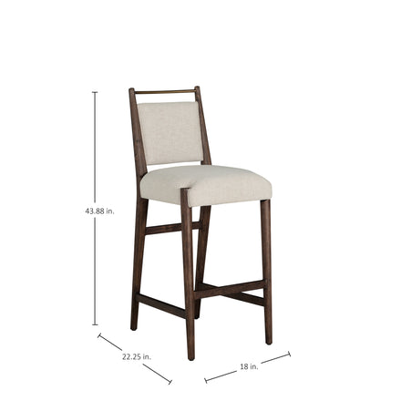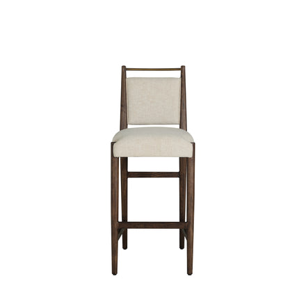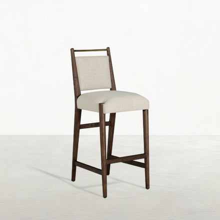 The Highland Bar Stool combines refined simplicity with everyday functionality. Crafted from oak in a Dusk finish, its sleek silhouette is enhanced by the soft, neutral tones of Slipaway Sand performance fabric—designed for durability and easy care. The stool’s cushioned seat and supportive back provide exceptional comfort, while the brass-toned bar along the upper back adds both a visual accent and practical grip for effortlessly pulling the stool in and out. Its clean lines and balanced proportions make it an elegant addition to kitchen islands or bar spaces, seamlessly fitting into modern, transitional, or rustic interiors with understated sophistication.