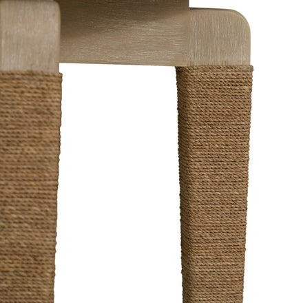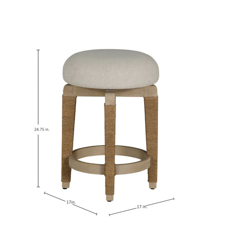 The Maris Swivel Counter Stool captures a refined coastal sensibility through natural materials and effortless design. Crafted from mahogany in a light Drift finish, the stool’s frame highlights clean lines and subtle texture, while the hand-wrapped banana leaf rope detailing along the legs introduces organic warmth and artisanal character. A smooth 360 degree swivel mechanism enhances functionality, complemented by a sturdy mahogany footrest for added comfort. The plush, round seat is upholstered in Slipaway Ivory performance fabric—a soft, durable neutral that pairs beautifully with a variety of palettes. Perfect for kitchen counters or casual dining spaces, the Maris Counter Stool blends relaxed elegance with everyday practicality.