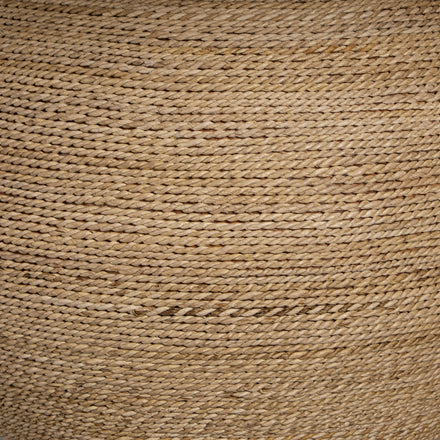 - Pedestal base wrapped in handwoven banana leaf rope for organic texture.