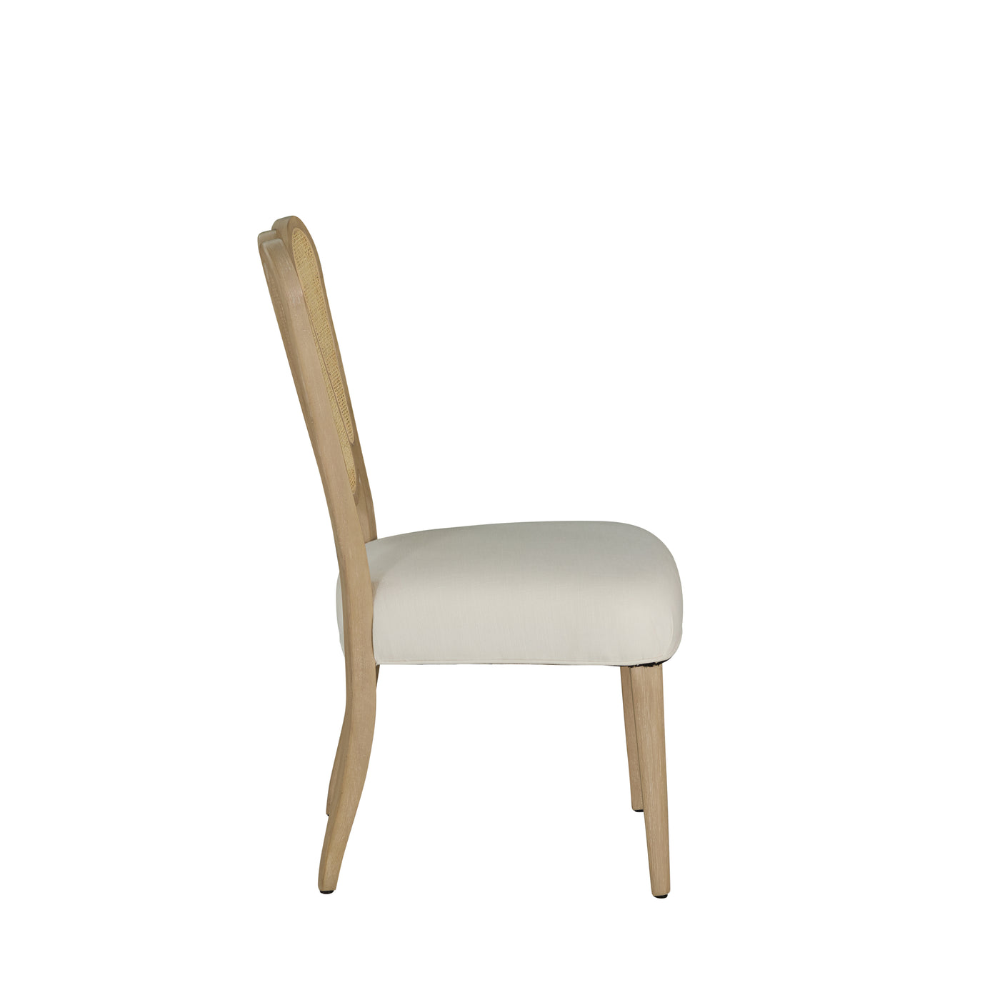 The Wave Dining Side Chair is a striking balance of craftsmanship and artistry, designed to bring movement and texture to any dining space. Crafted from mahogany in a Drift finish, its sculpted backrest forms the collection’s signature wave pattern—each curve framed in solid wood and filled with airy, handwoven and sustainable cane. The simple open weave lends a light, natural feel, beautifully contrasting the smooth, tailored seat upholstered in Allie Cloud performance fabric. Both durable and versatile, this soft neutral fabric complements the chair’s organic tones. Elegant yet relaxed, the Wave Dining Side Chair makes a statement of refined ease, perfect for coastal, transitional, or contemporary interiors.