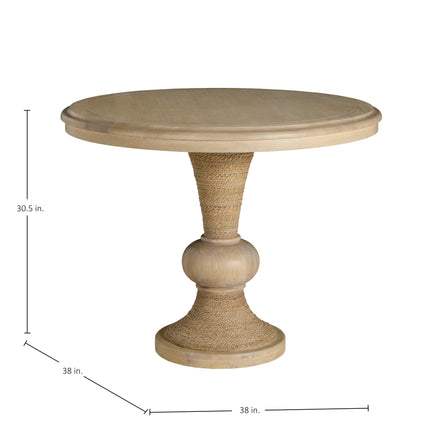 The Waverly Center Table showcases a perfect harmony of natural materials and sculptural design. Crafted from mahogany in the softly weathered Drift finish, its round top highlights the organic beauty of the wood grain, adding a touch of warmth and refinement. The table’s gracefully contoured pedestal base is meticulously hand-wrapped in banana seagrass, an artisanal process that gives each piece its own unique texture and character. The layered craftsmanship—from the turned mahogany form to the carefully woven seagrass—creates a sense of organic elegance and tactile depth. The Waverly offers a versatile size that comfortably seats up to four people, making it ideal for intimate dining or as a statement foyer table. Combining coastal ease with refined sophistication, this piece brings natural artistry to any space.