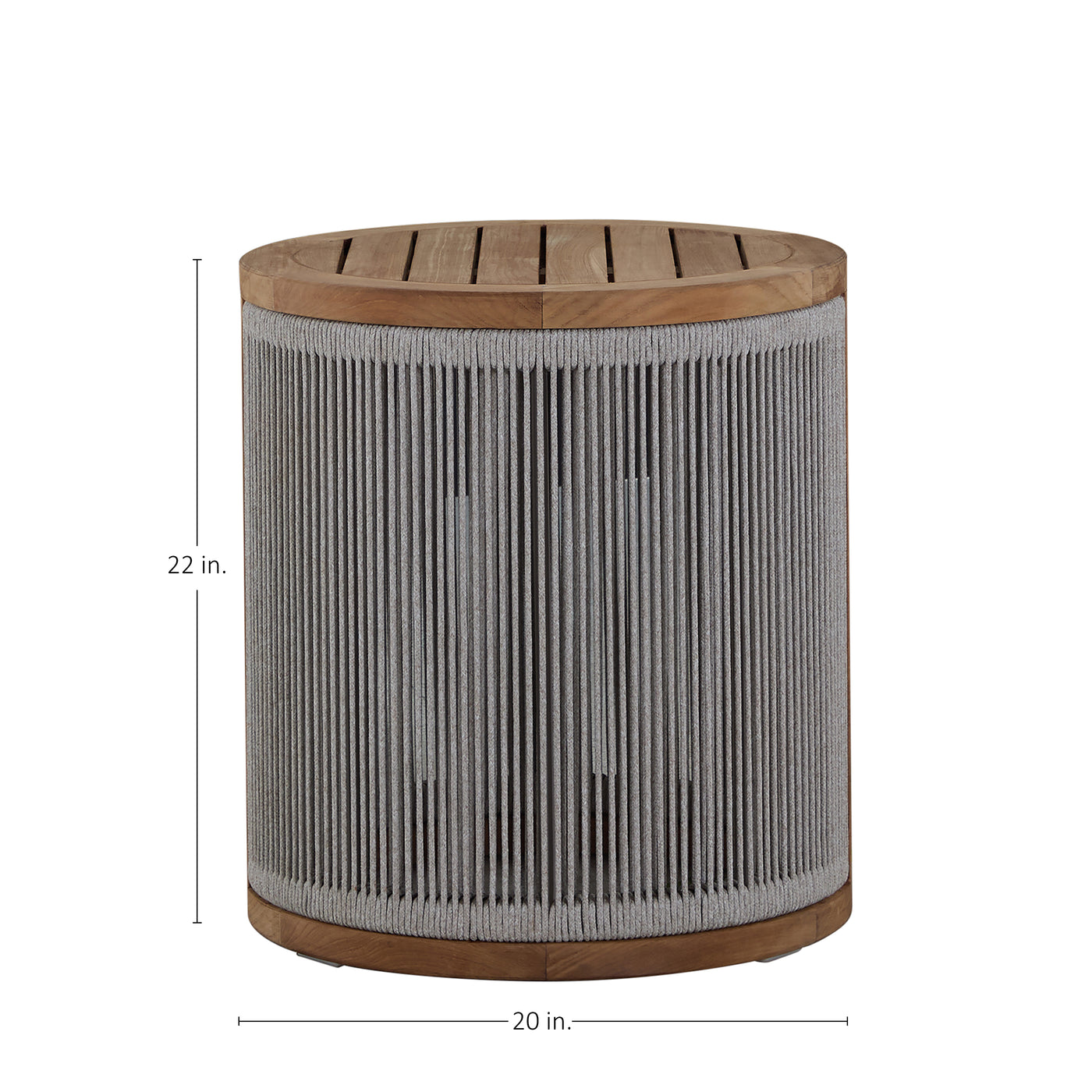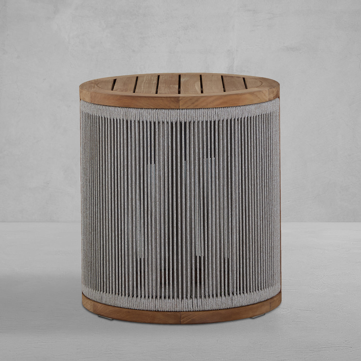 The Avalon End Table delivers the same elevated craftsmanship in a compact, versatile form. Made with responsibly sourced teak and encircled in tightly woven olefin rope, it adds rich texture and refined contrast to your outdoor setting. Its rounded profile and solid teak top make it ideal for pairing with lounge chairs or sofas, providing a functional surface that complements the collection’s cohesive, coastal-inspired design.