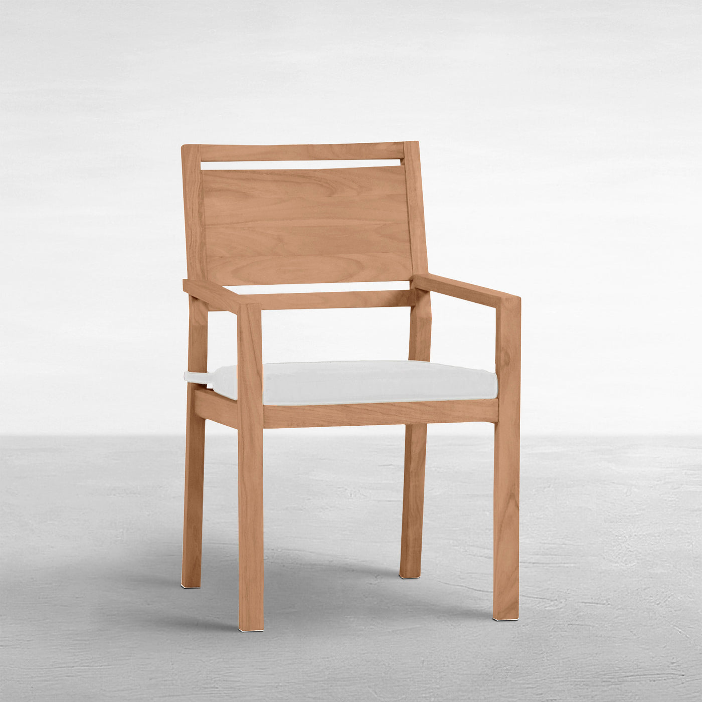 Embrace the fusion of style and sustainability with the Avondale Teak Dining Arm Chair. This piece harmonizes mid-century elegance with the timeless resilience of natural teak. Its gracefully sculpted frame, accentuated by neat lines and a slatted back, promises durability and weather resistance—a testament to the superior qualities of teak wood. As time passes, the chair's wood matures into a rich patina that enhances its aesthetic, embodying a sense of history and nobility in your outdoor dining space. Crafted from FSC-certified Indonesian teak plantations, this dining armchair is not just a seat at the table, but a commitment to enduring design and responsible luxury. This item is designed to be enjoyed either with or without a cushion. Please designate your choice in the below "Select a Cushion" dropdown.