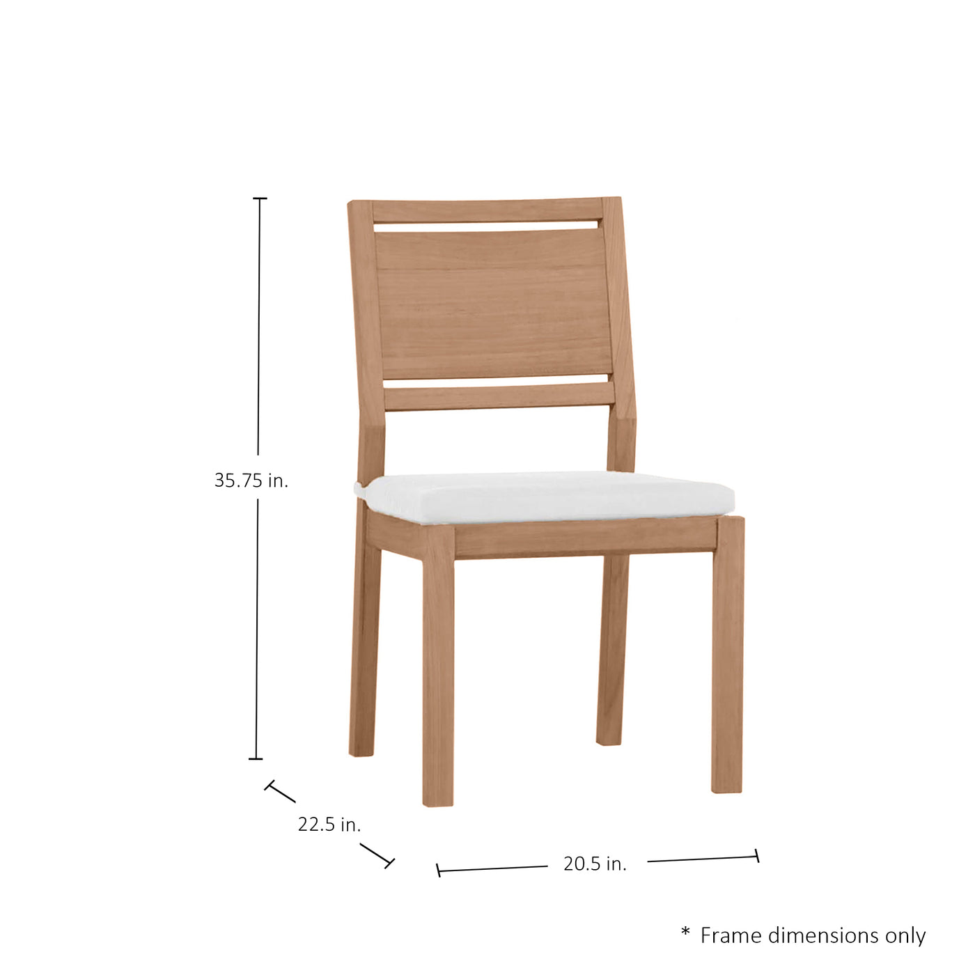 The Avondale Teak Side Chair features a classic mid-century modern design with deep seating and simple lines. Made of durable farm-grade teak, this stylish chair is built to last for years of outdoor enjoyment. This chair mixes well with teak dining pieces, accent tables, and a variety of other outdoor styles. This item is designed to be enjoyed either with or without a cushion. Please designate your choice in the below "Select a Cushion" dropdown.