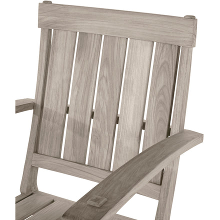 - Broad flat armrests and teak plank back offer a perfect balance of comfort and classic design