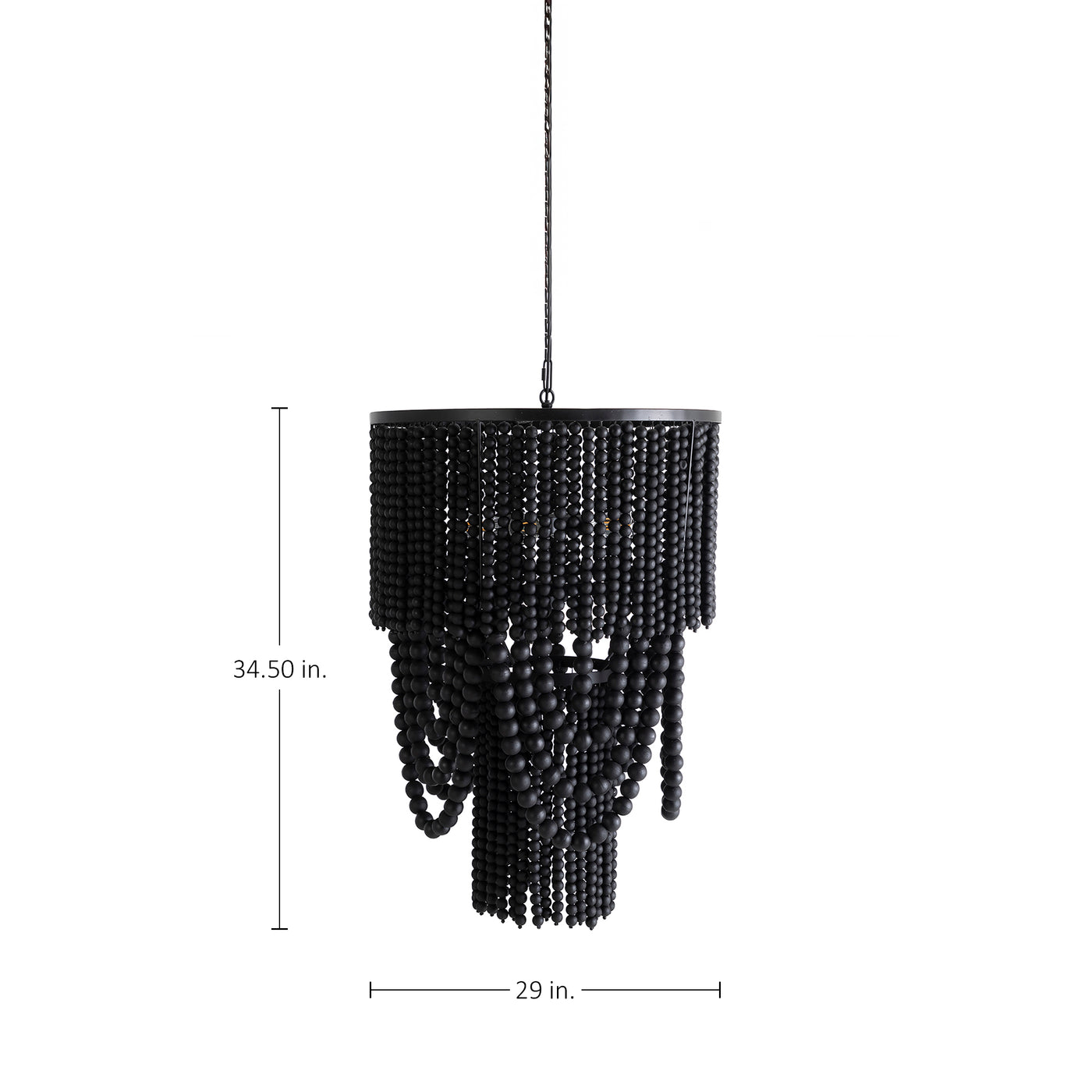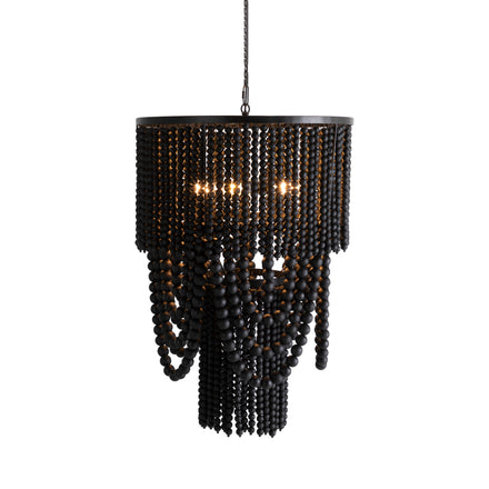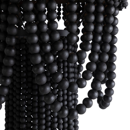 - Charcoal black finish on the wood beads adds depth and contrast, creating a warm and dramatic ambiance when illuminated