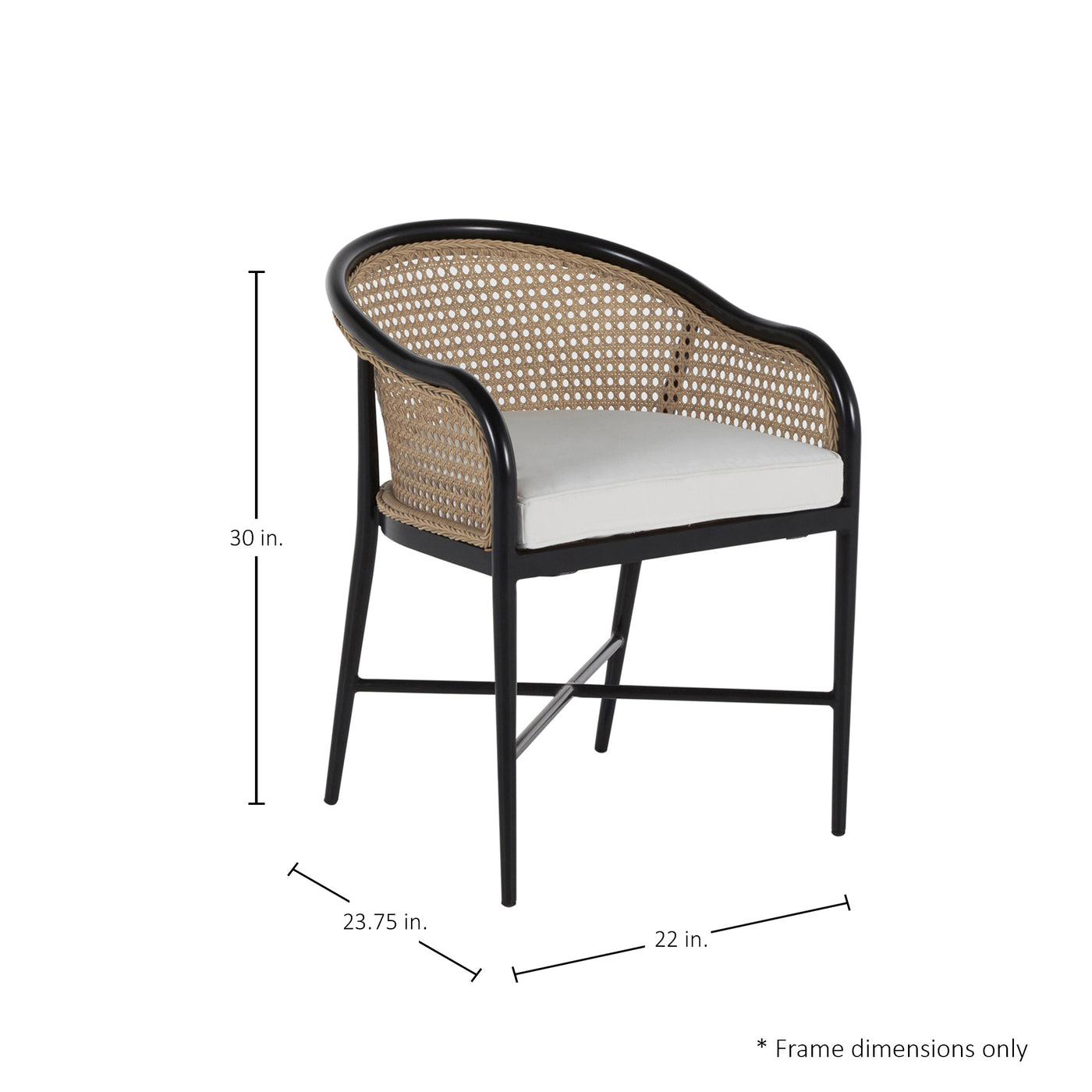The Havana Arm Chair is a masterpiece of design, capturing the essence of its iconic namesake with its timeless elegance and vibrant flair. The Havana Arm Chair features a gently curved wrought aluminum frame and all-weather, natural hand-woven N-Dura™ resin wicker inspired by open cane weaving. This item is designed to be enjoyed either with or without a cushion. Please designate your choice in the below "Select a Cushion" dropdown.
