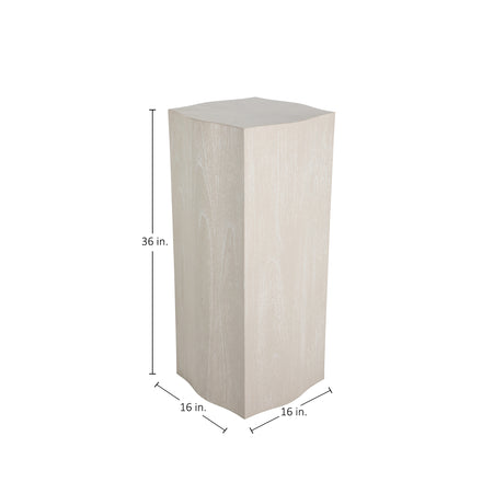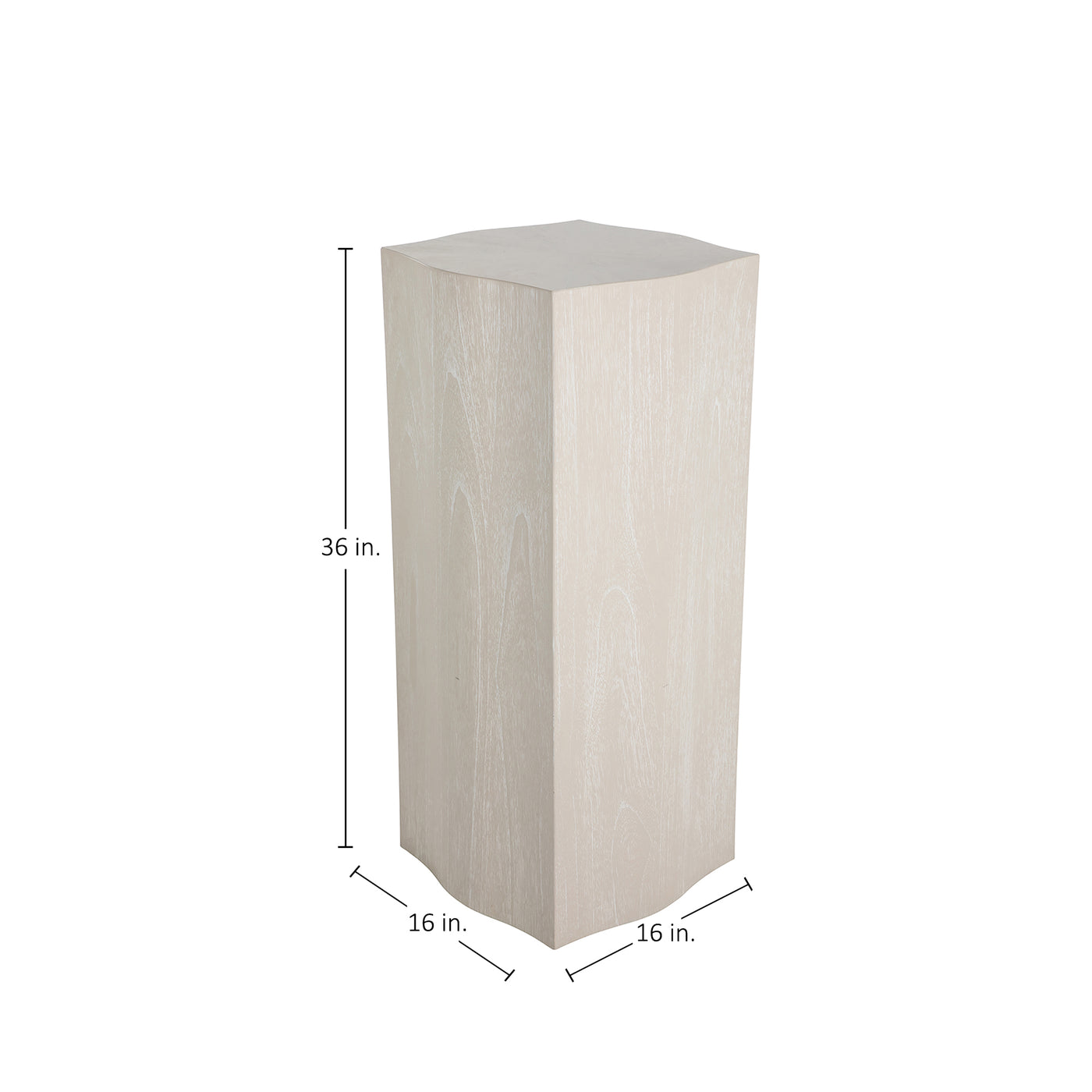 The Wes Pedestal was inspired by a past time in which grand houses would be adorned with items and busts made for such attention. Today we have transformed the grand pedestal into a more subtle and elegant piece, in cerused white, which doesn't seek to be seen, but instead is noticed for its delicate nature and ample stature. The Wes Pedestal can be used to house a variety of items including sculptures, flower arrangements, lamps, and other small decor items. Great places to set pedestals are within large entryways, corners of dining or living rooms and as a focal point along accent walls. Please note that this product uses natural materials and differences in color and pattern should be expected.