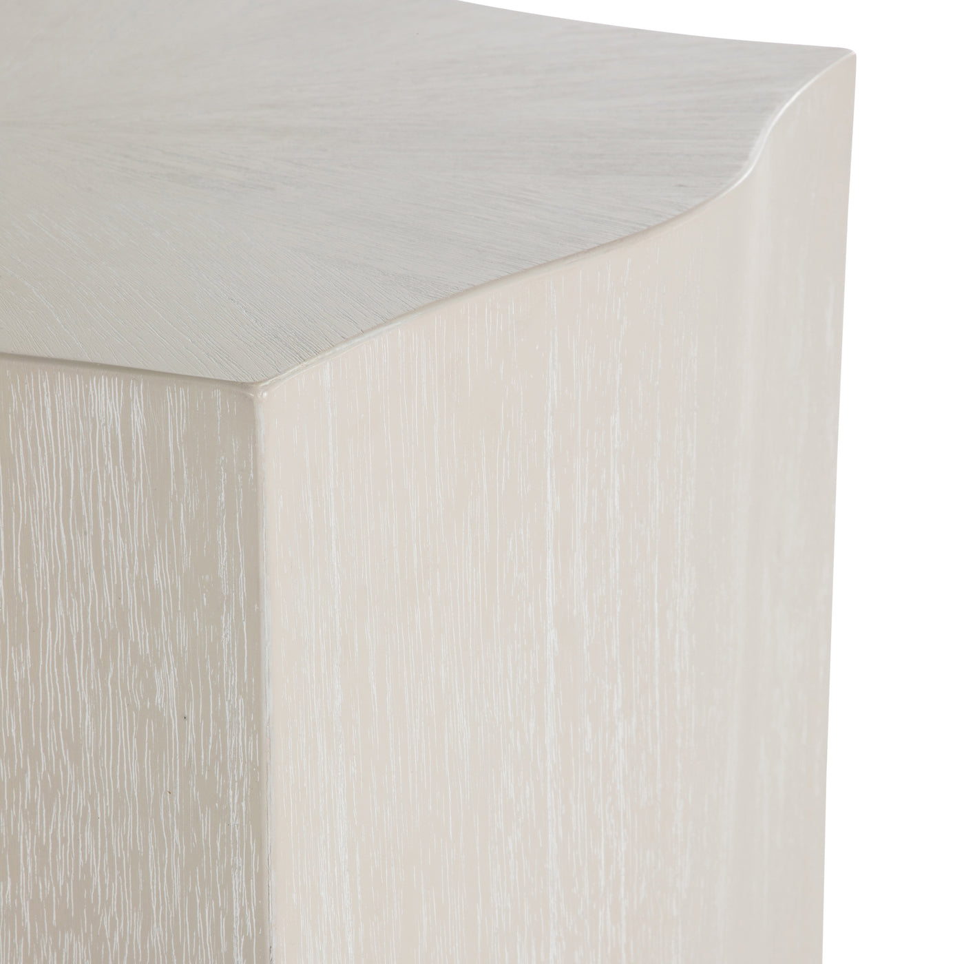 - Cerused white finish highlights the natural grain and texture of the wood.
