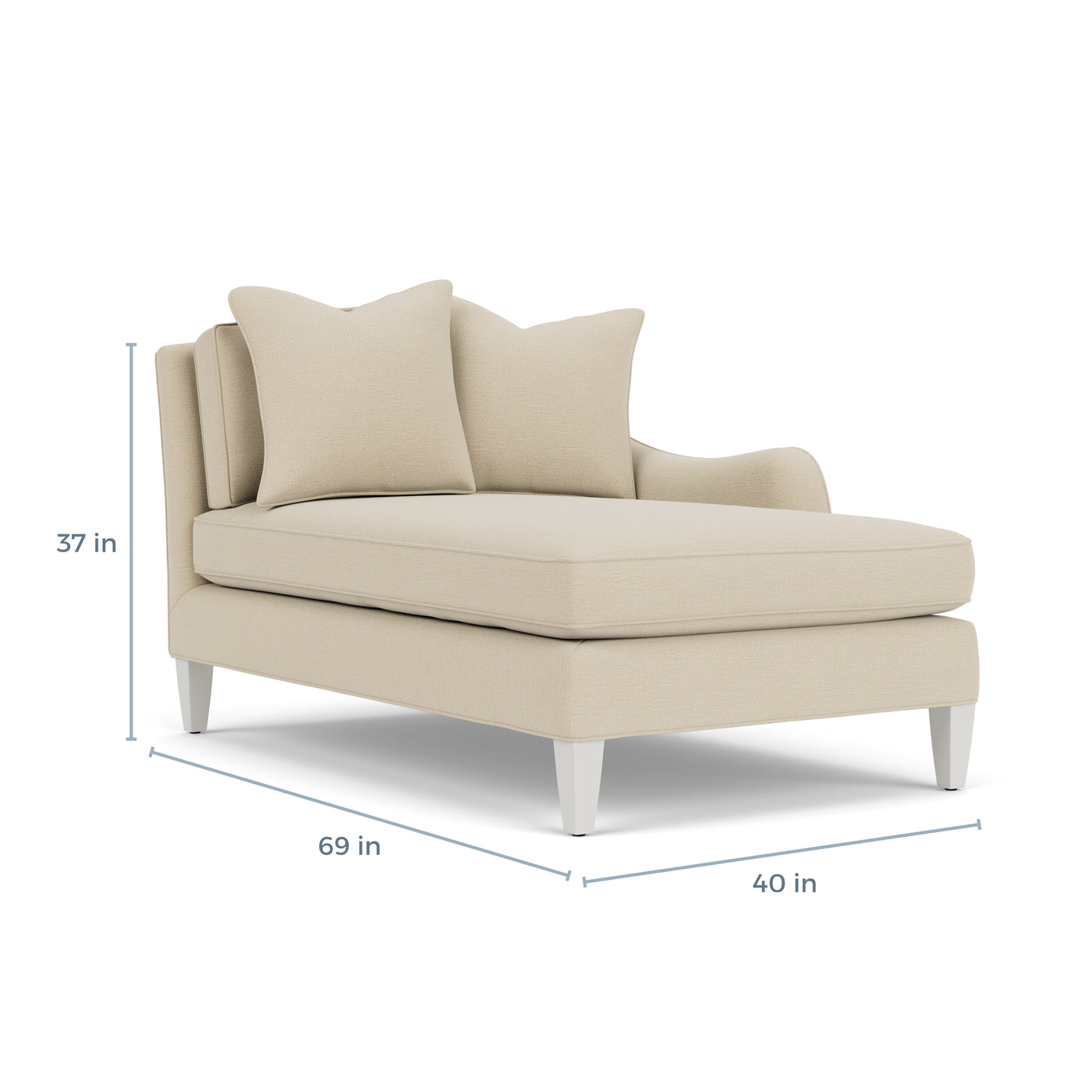 The Liberty Chaise exudes glamour and comfort, making it a sophisticated addition to any setting. Available with either a left or right arm, this chaise features dense box cushions that offer cloud-soft relaxation and customized coziness. Its sleek design and luxurious feel make it perfect for lounging in style, whether in a living room, bedroom, or reading nook.