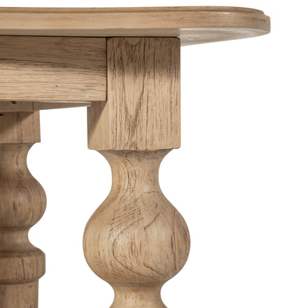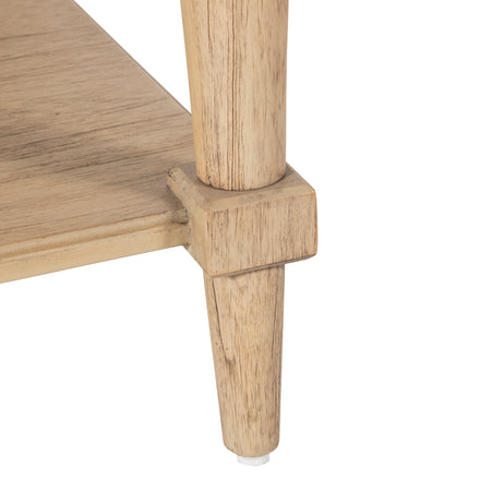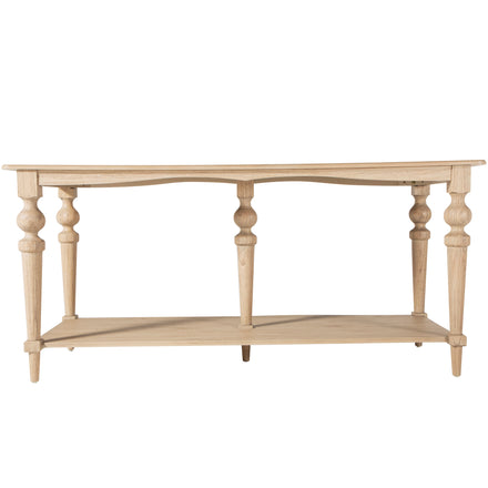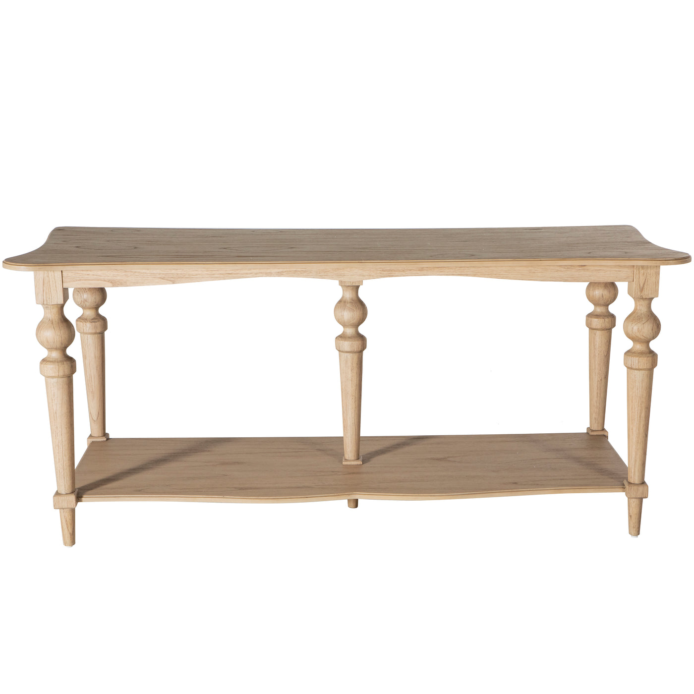 Inspired by an English antique, the Nirvana Console Table has a grand width that belongs in large foyers, dining rooms or behind an equally impressive sofa. The wide open space created beneath is perfect for stowing poufs, baskets and other tall decorative items. Its natural blonde finish highlights the solid wood grain, while the subtle curves and turned legs soften the silhouette, adding a touch of timeless elegance to any space.