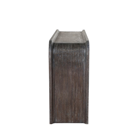 - Crafted from mindi wood with a cerused ash finish that highlights natural grain and adds warmth to your interior