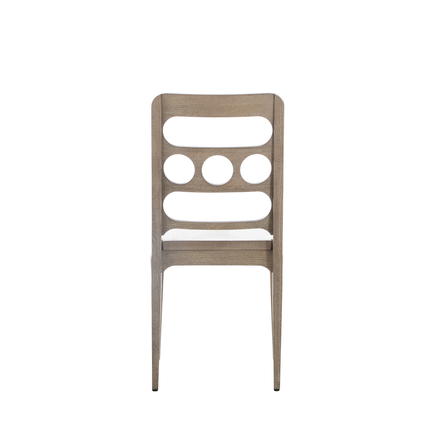 The Ellison Dining Chair brings a blend of modern sophistication and artistic design to any dining space. The natural finish highlights the wood's inherent beauty and texture, while the geometric cutouts in the backrest enhance the chair's aesthetic appeal. The elegant design and refined finish make it an ideal addition to both formal dining rooms and casual kitchen spaces. The Ellison Dining Chair is perfect for those who appreciate contemporary design elements with a touch of artistic expression.