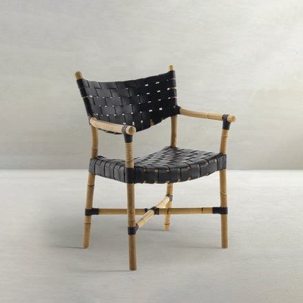 Morrison Natural Rattan Leather Open Weave Arm Chair - Black