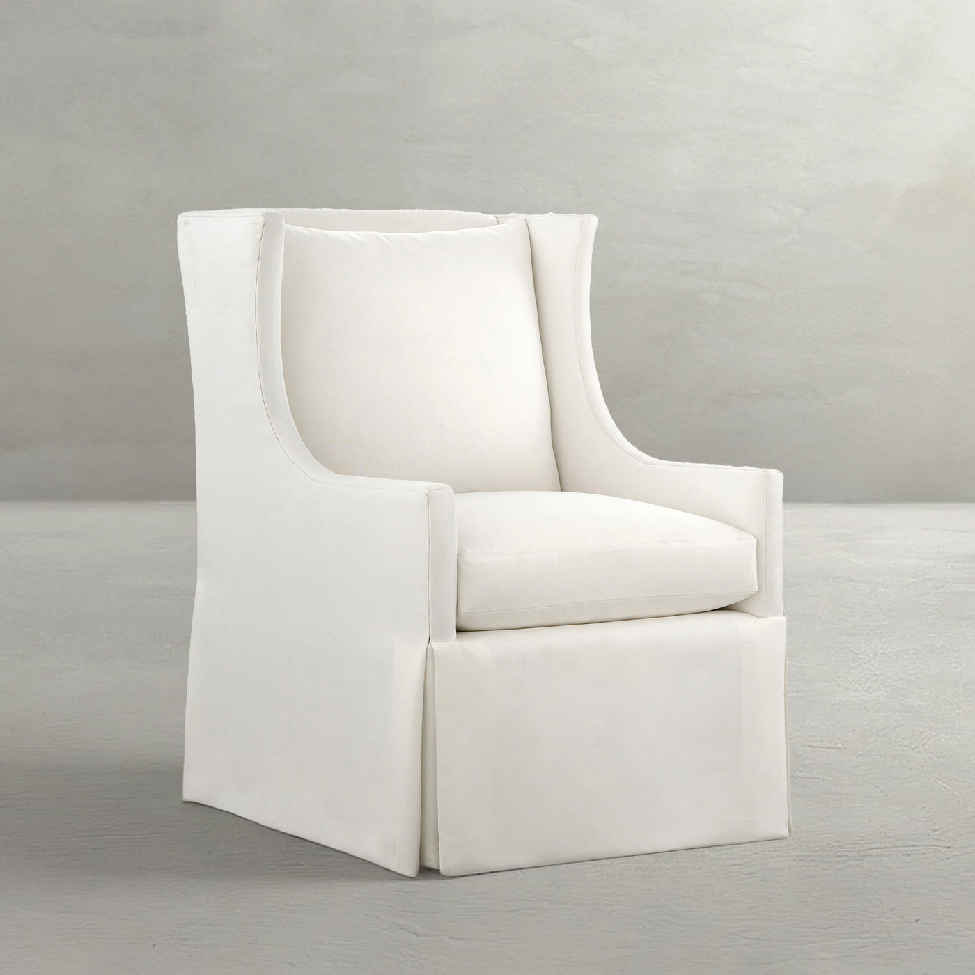 Amber Falls Skirted Upholstered Swivel Chair - Swoop Wing Arms