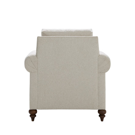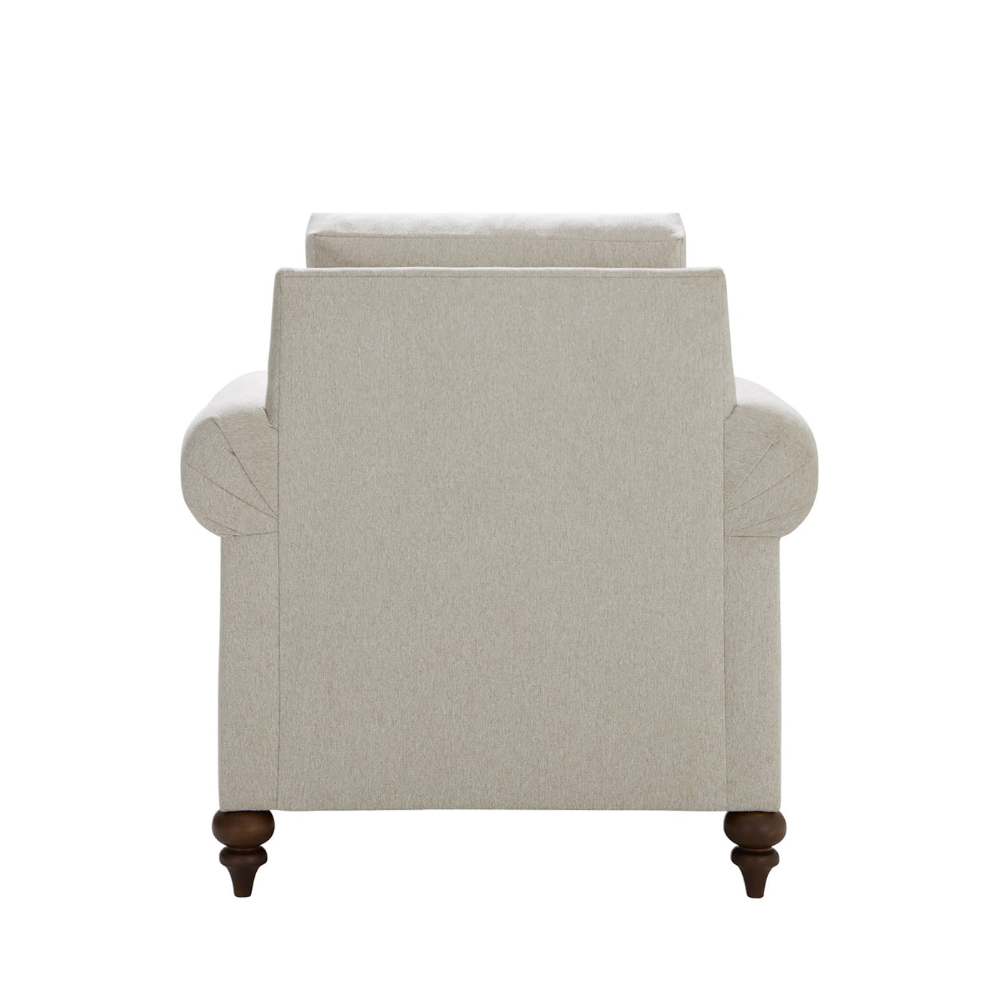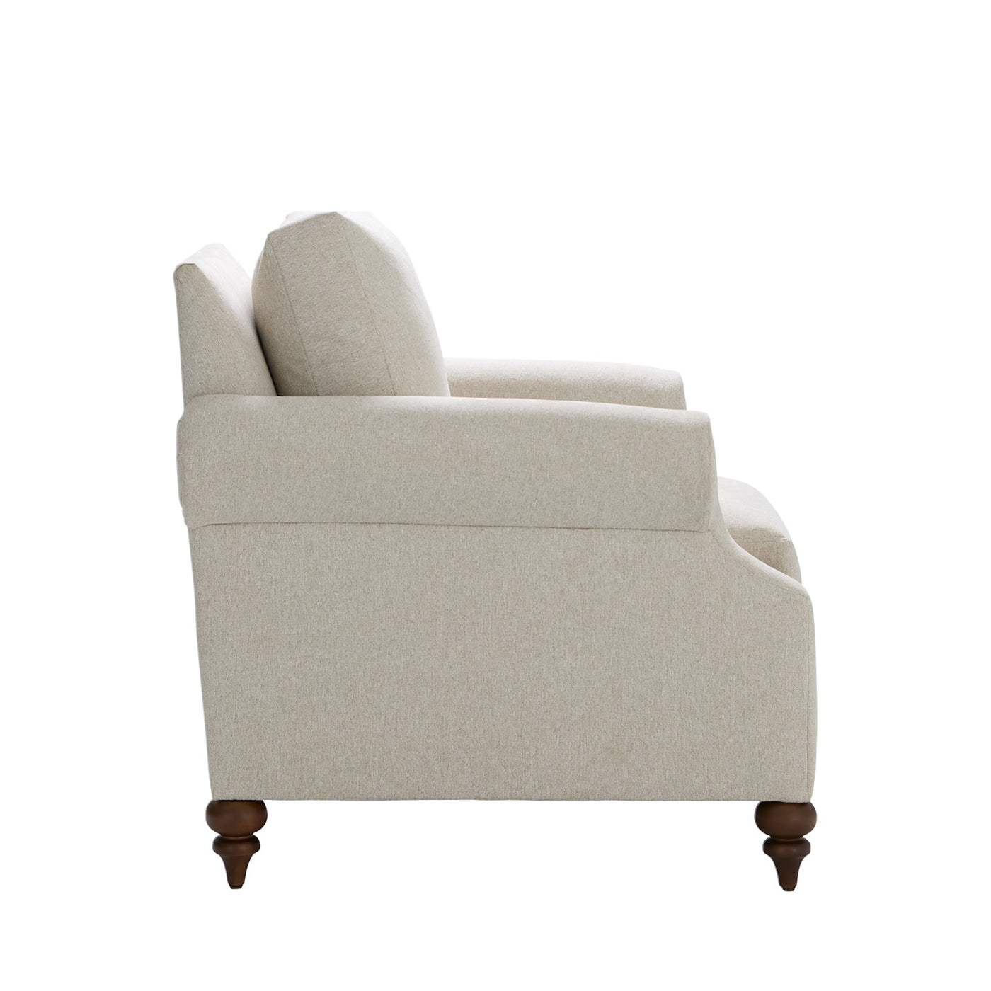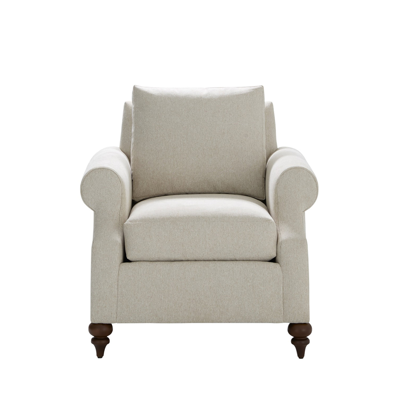 - Beautifully recessed scroll arm enhances elegance with graceful form.