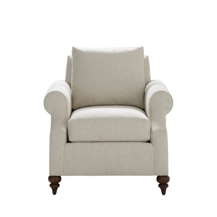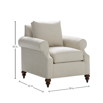 The Antoinette Chair exudes timeless elegance and classic charm, making it a perfect addition to any living space. Its traditional design features rolled arms and turned wooden legs, providing a sophisticated silhouette that complements both modern and traditional interiors. The plush cushions offer exceptional comfort, making it an ideal spot for relaxation or entertaining guests. The Antoinette Chair is versatile enough to be the focal point of a cozy reading nook or to enhance the seating arrangement in a formal living room. Customize the chair with your choice of fabric from our extensive selection available in our retail stores, ensuring it perfectly matches your style and décor preferences.
