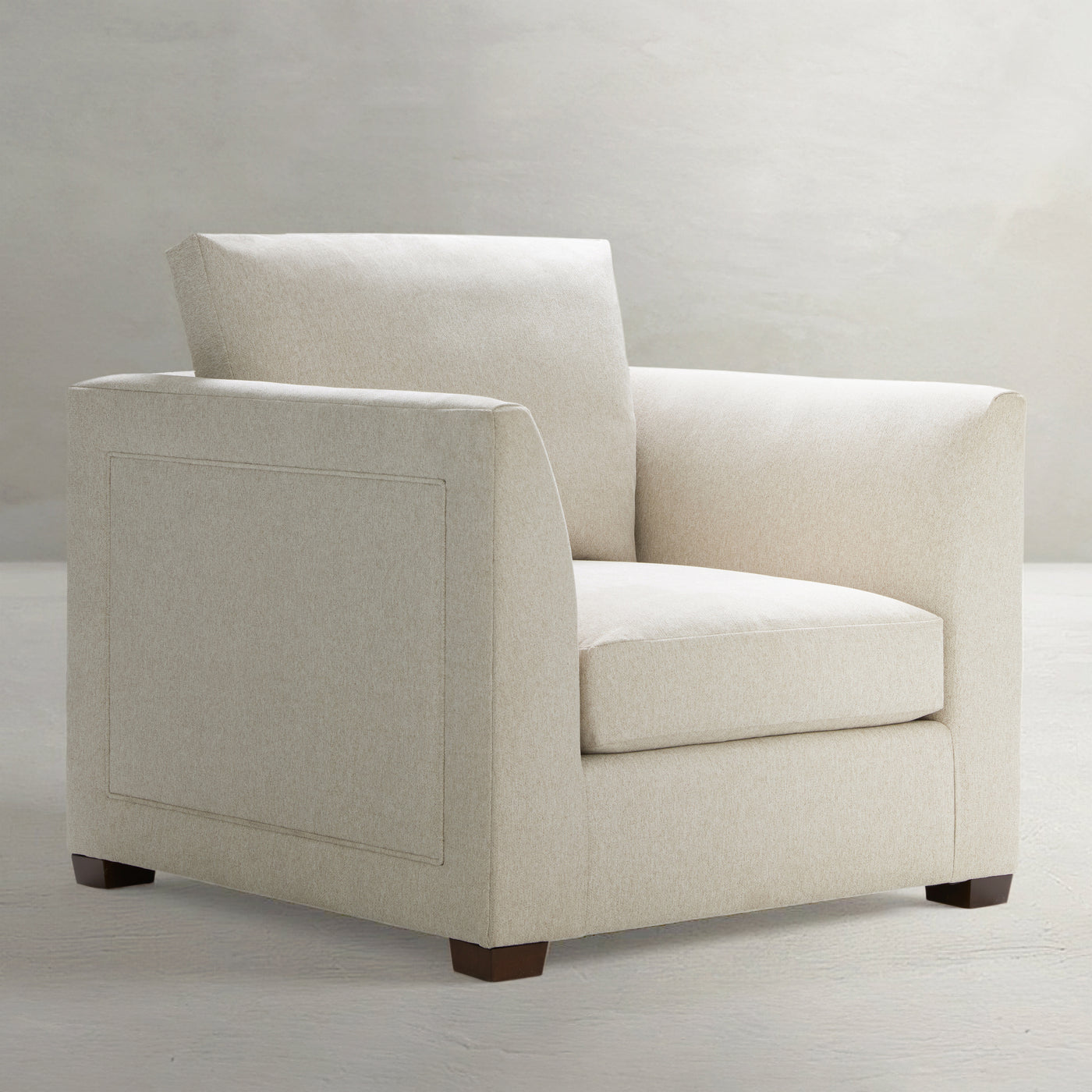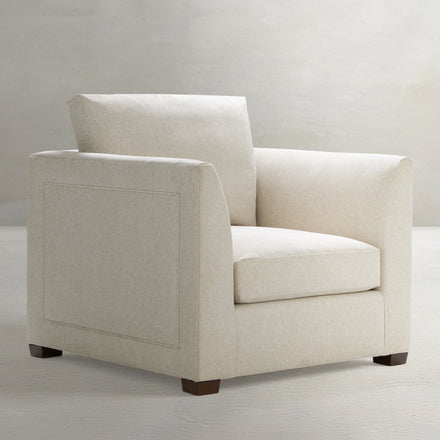 The Burk Chair is the epitome of laidback luxury, featuring a deep plush seat, supportive high back, and refined flared arms. Its compact design is perfect for adding a touch of comfort to any room, while its casual yet sophisticated details ensure it blends effortlessly with both modern and traditional interiors. Inspired by 20th-century European design and custom-made in North Carolina, the Burk Chair invites you to relax in timeless style.